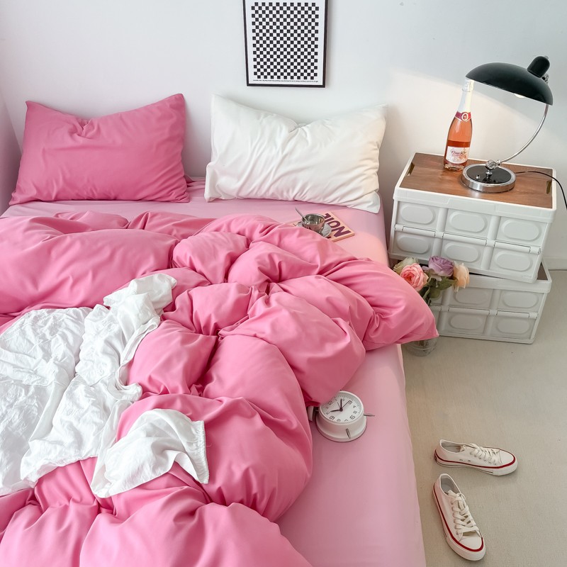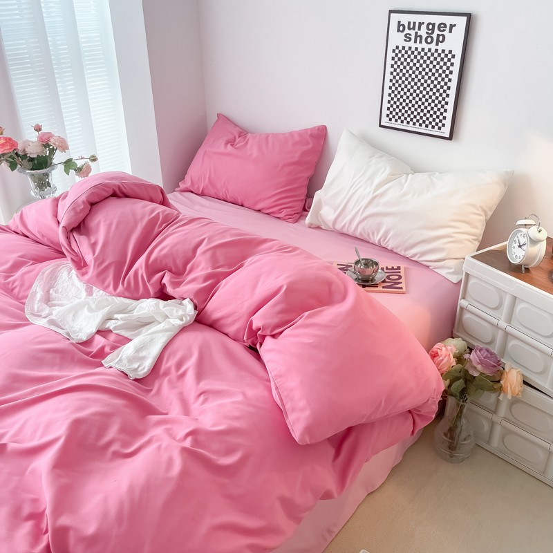 (总)雨帆家纺 2026新款素色双拼水洗棉混搭四件套,粉+浅黄,粉+玉,蓝+咖,米黄+兰,粉+天蓝,兰+深蓝,浅黄+粉,浅黄+黄,玉+咖
