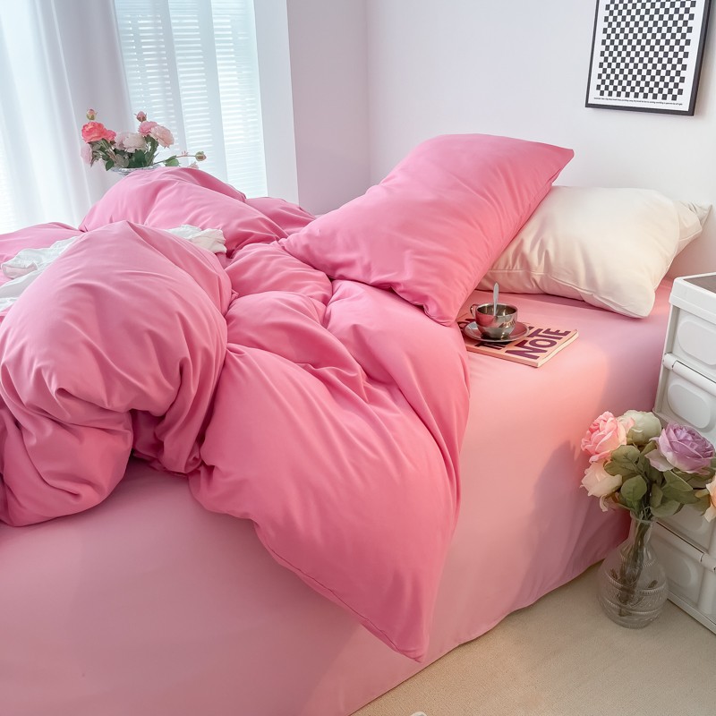 (总)雨帆 2023新款简约纯色水洗棉四件套,暗紫,高级灰,藕粉,浅咖,浅绿,天空蓝