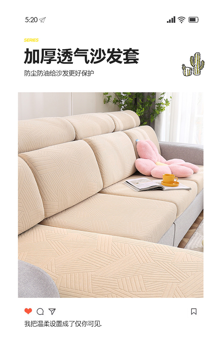 当前位置: 91家纺网 > 商品网购 > 居家布艺 > 坐垫/椅垫/沙发垫 > 沙发垫 > 千彤沙发垫 2022新款提花自由生活系列弹力沙发套 米黄