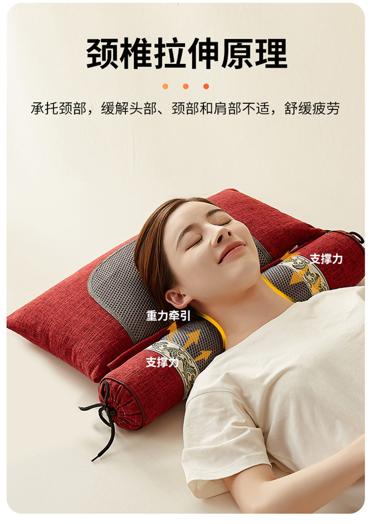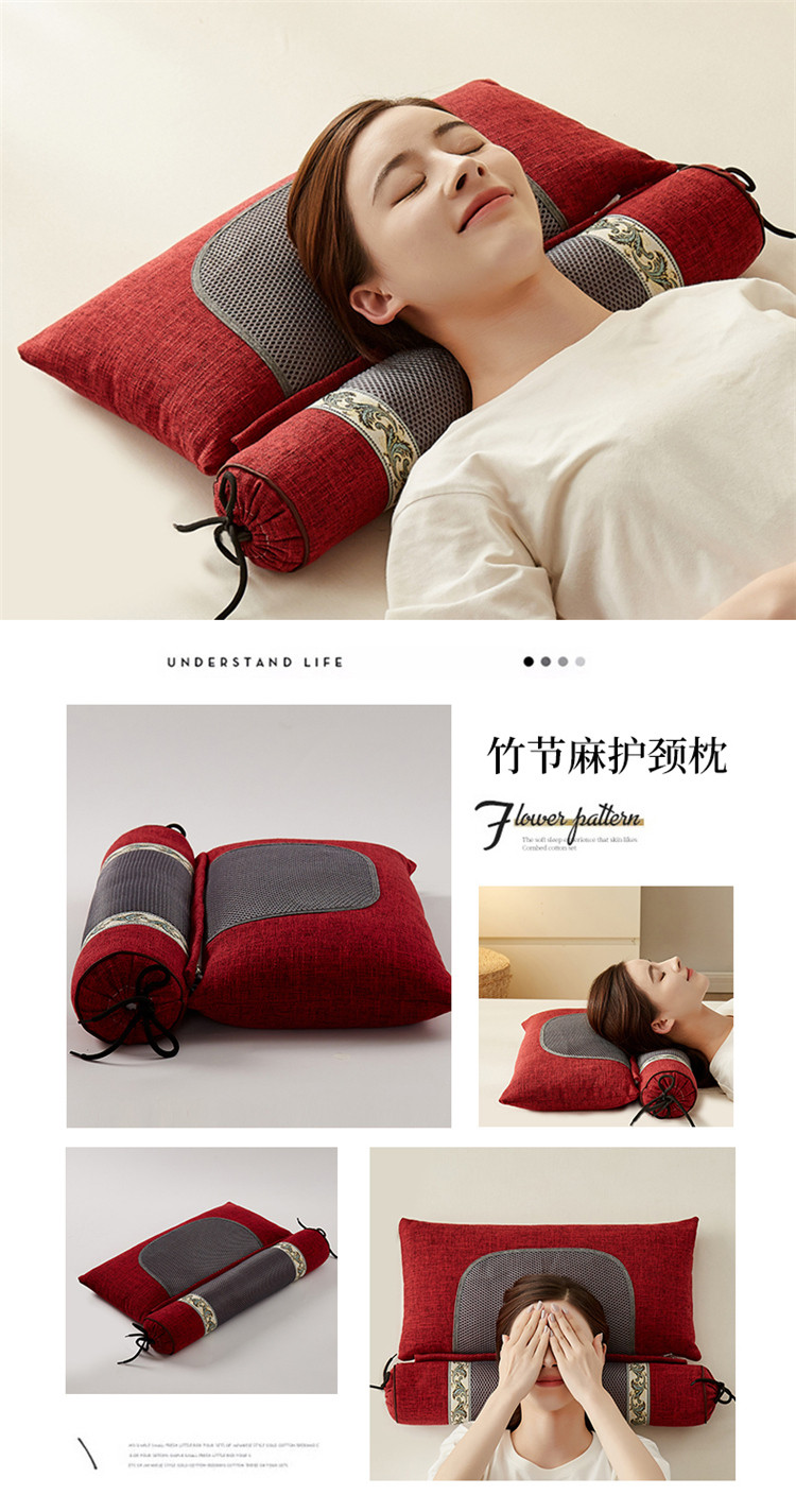 商品名称:乐可 2022新款竹节麻荞麦颈椎枕 古典红