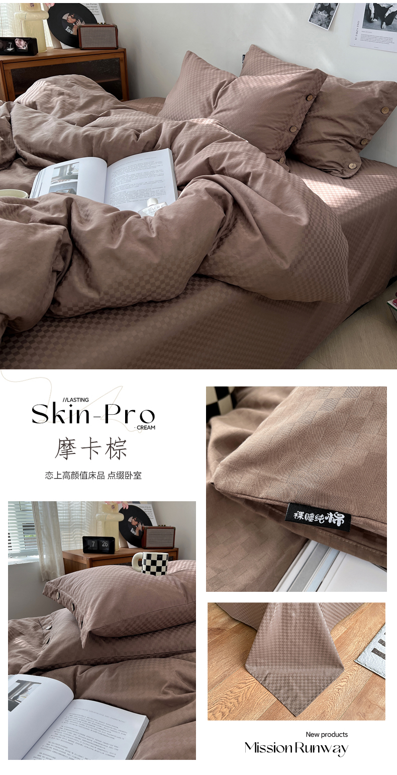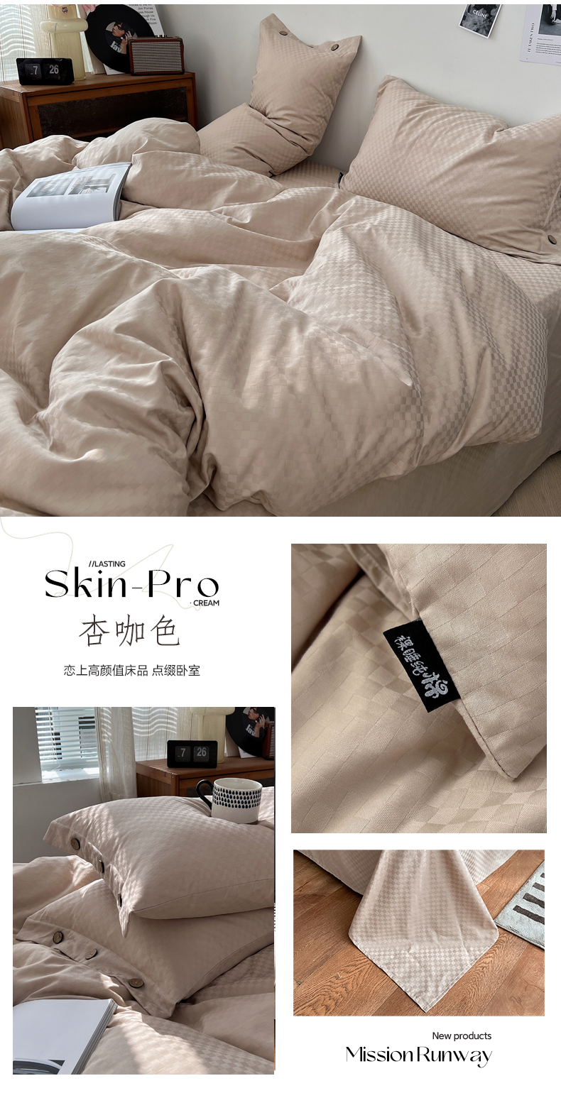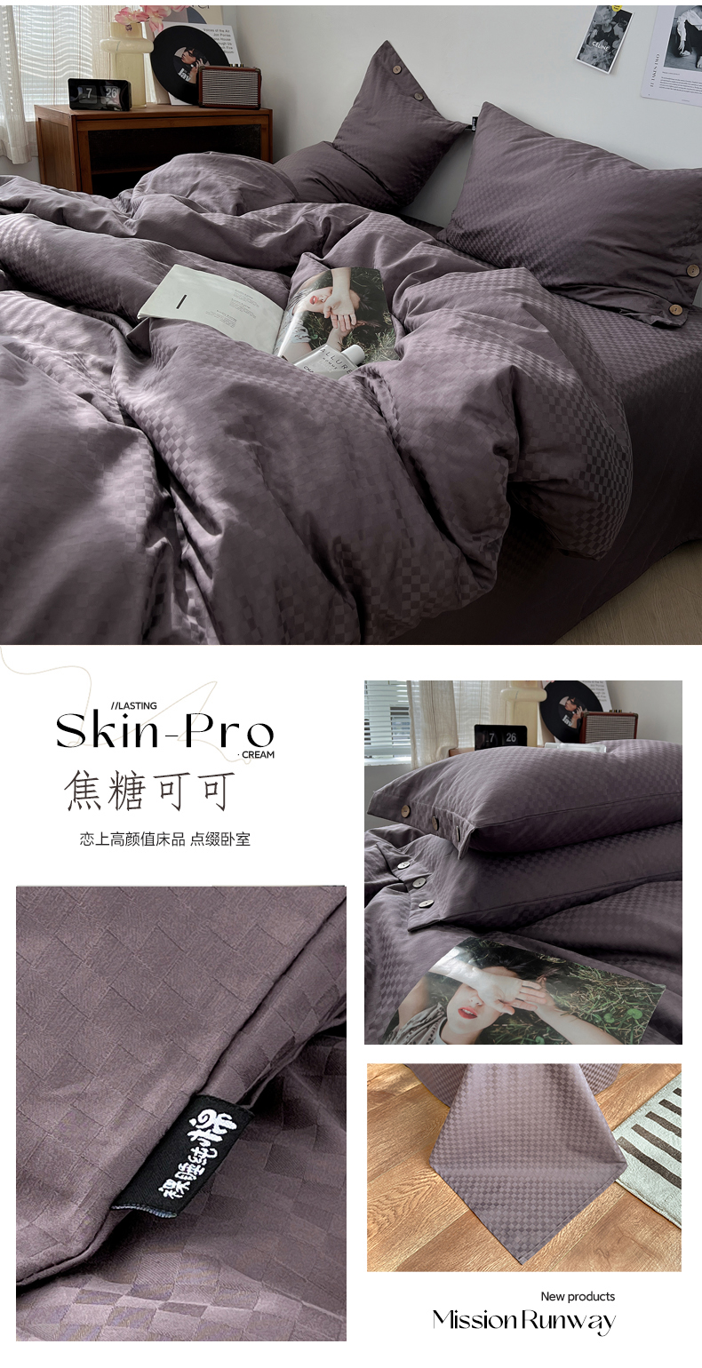 (总) 三朵 2023新款全棉提花贡缎锻格四件套-场景二
