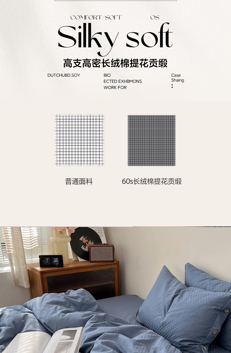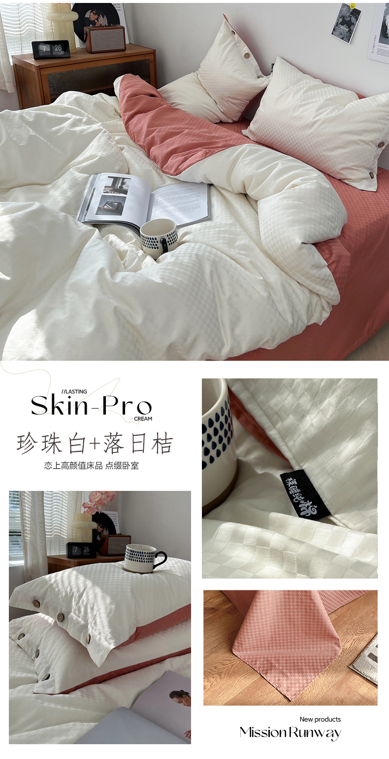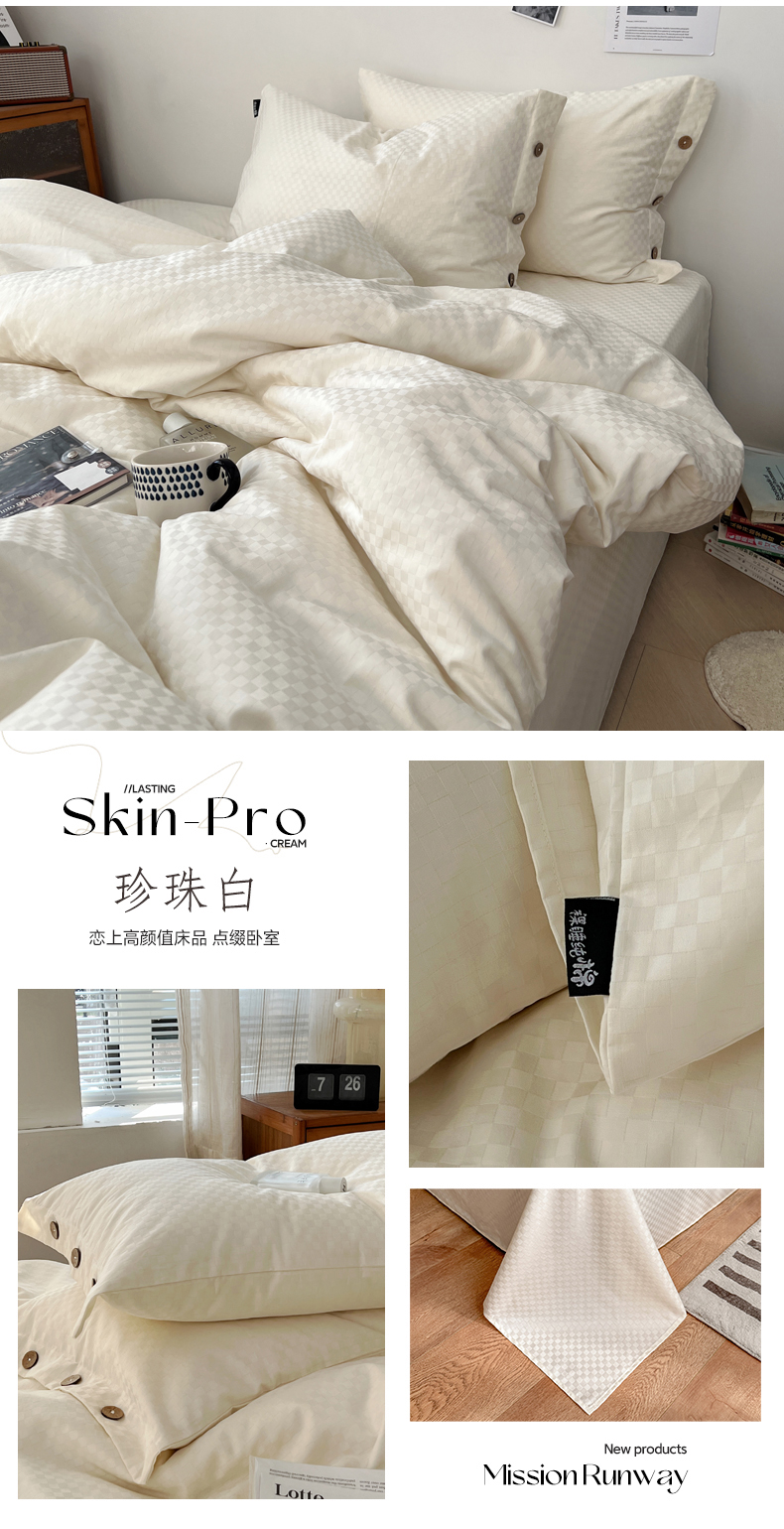 (总) 三朵 2023新款全棉提花贡缎锻格四件套-场景二