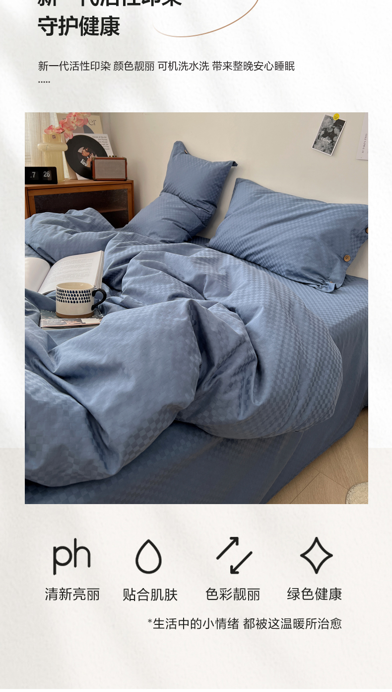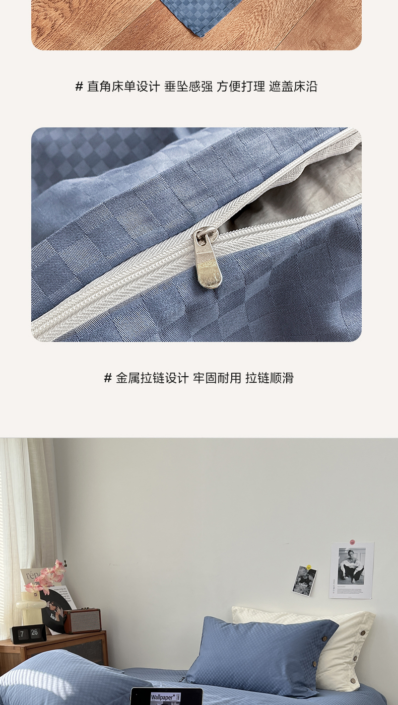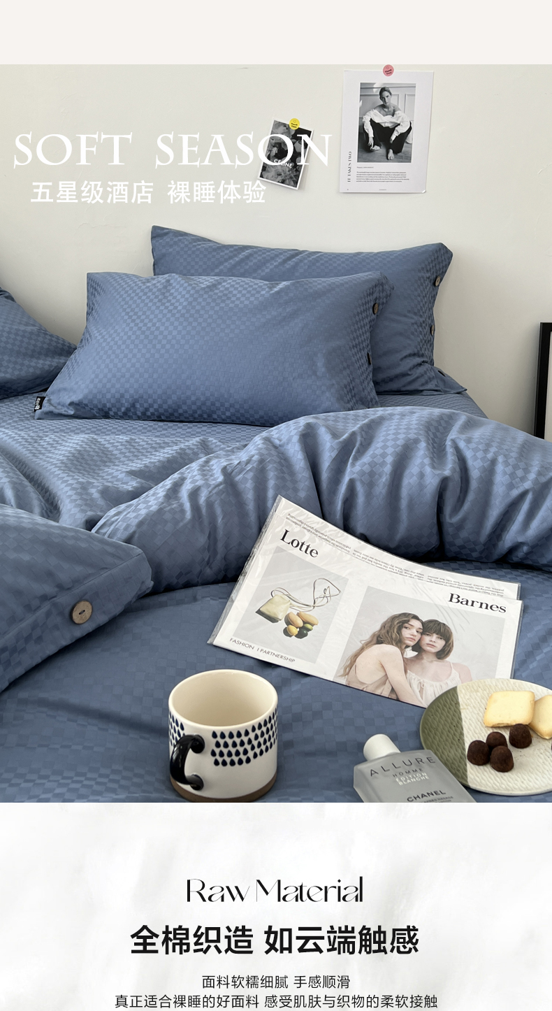 商品名称:(总) 三朵 2023新款全棉提花贡缎锻格四件套-场景二