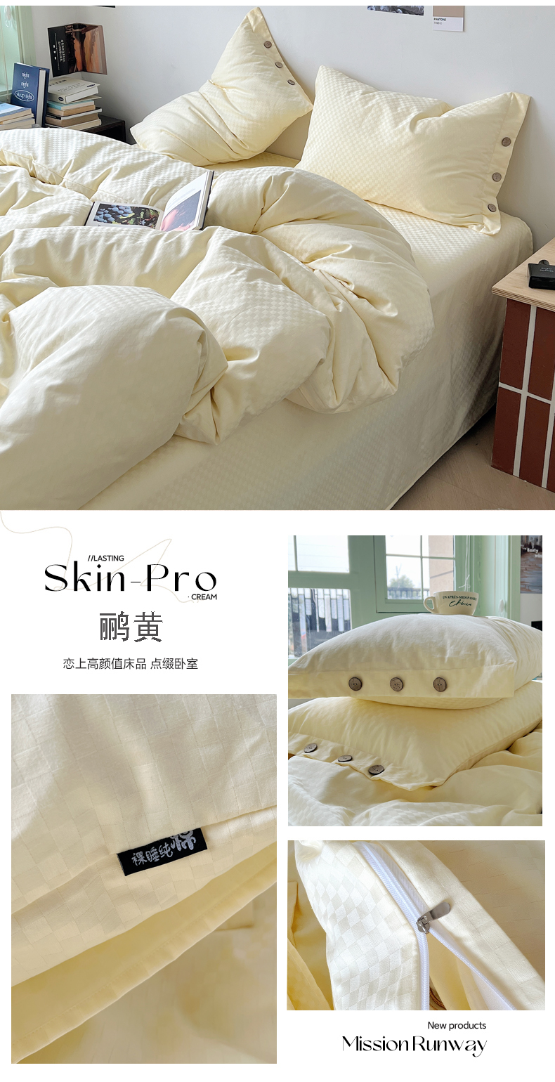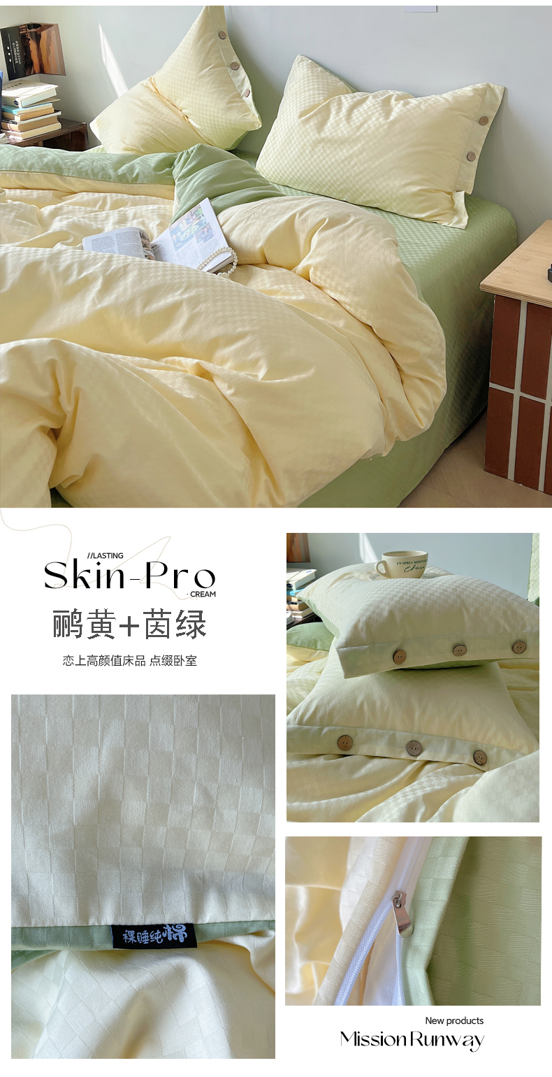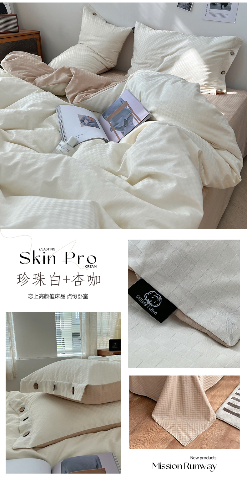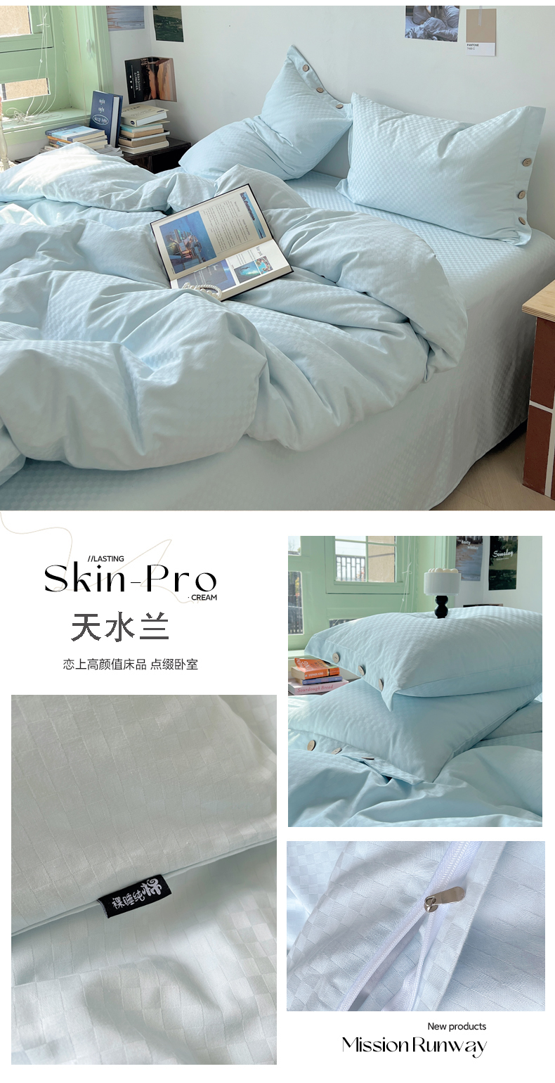 (总)三朵家纺 2026新款ins风全棉纯色双拼水洗棉四件套极简风系列,风青月白,焦糖曲奇,蓝韵雾纱,流光奶绿,抹茶奶黄,浅蓝芝士,香芋奶昔,烟墨灰,云纱可可