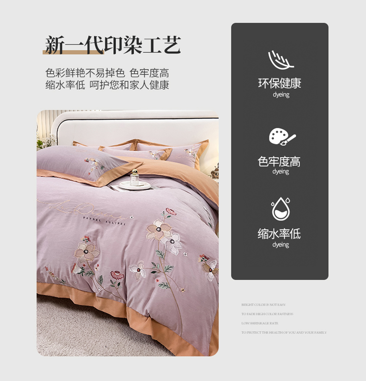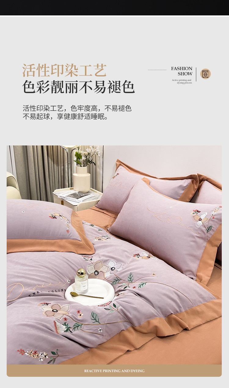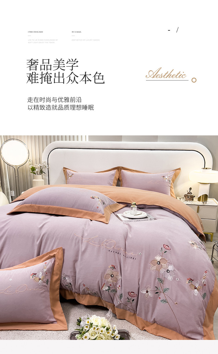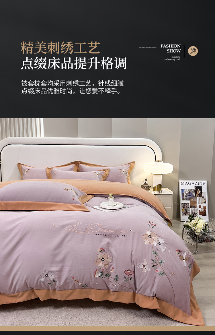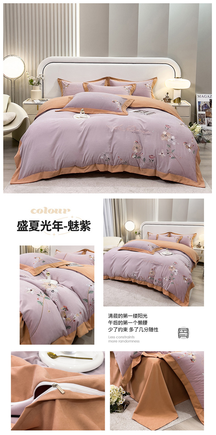 商品名称:2024新款秋冬保暖云锦棉刺绣宽边盛夏光年系列四件套 盛夏光年-魅紫