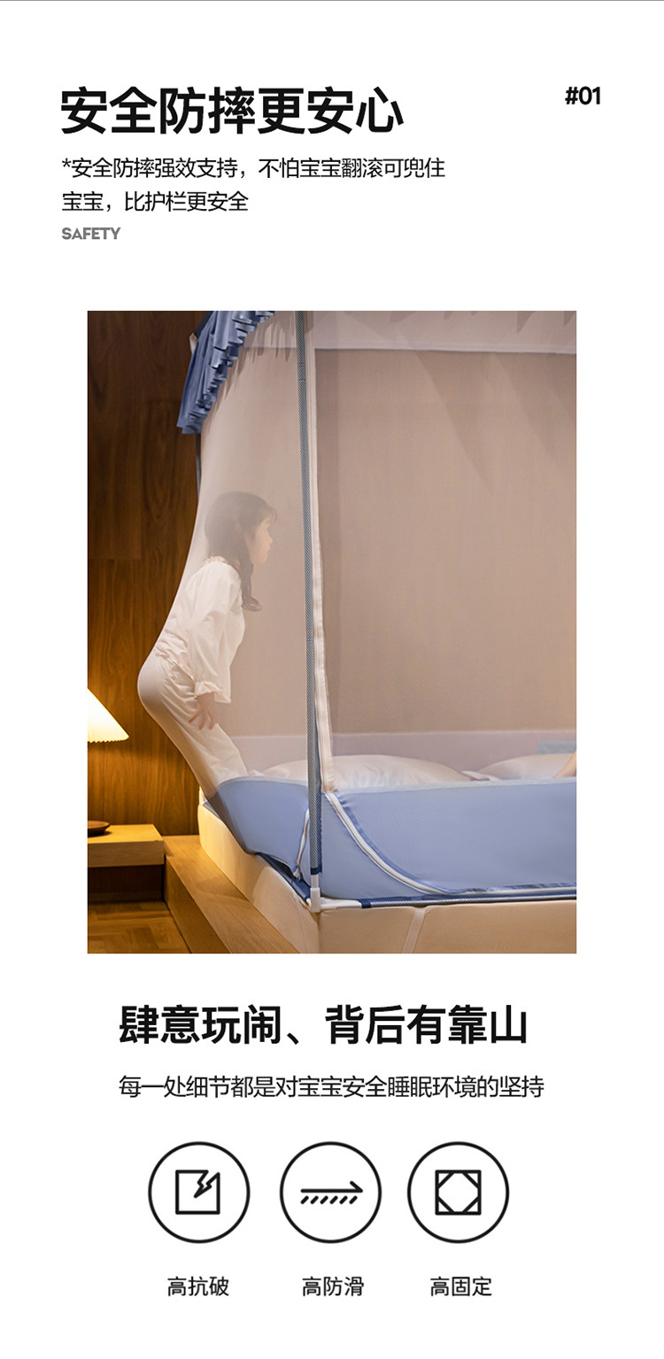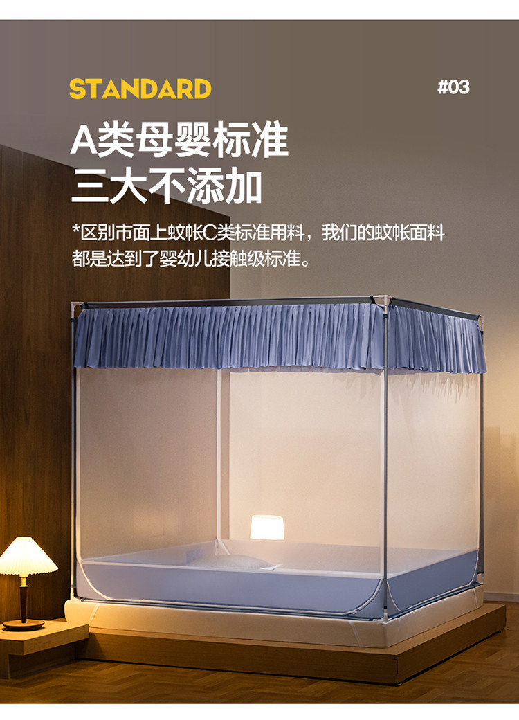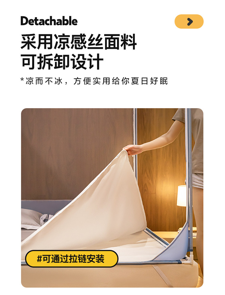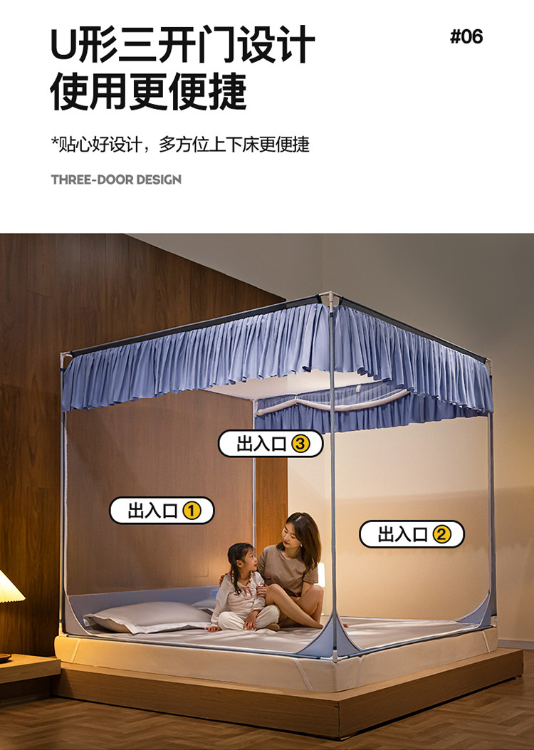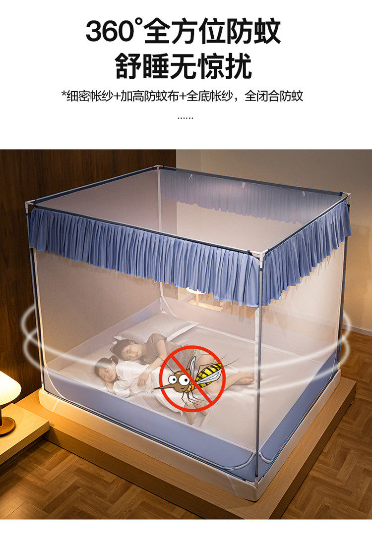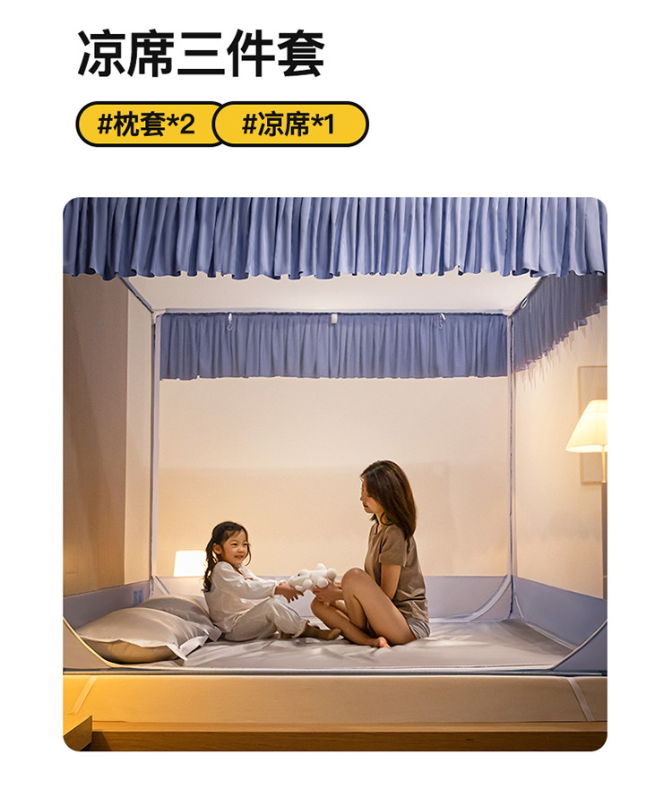 商品名称:青竹苑 2023纯色可拆洗冰丝凉席外穿三门全底防摔蚊帐 郁蓝色