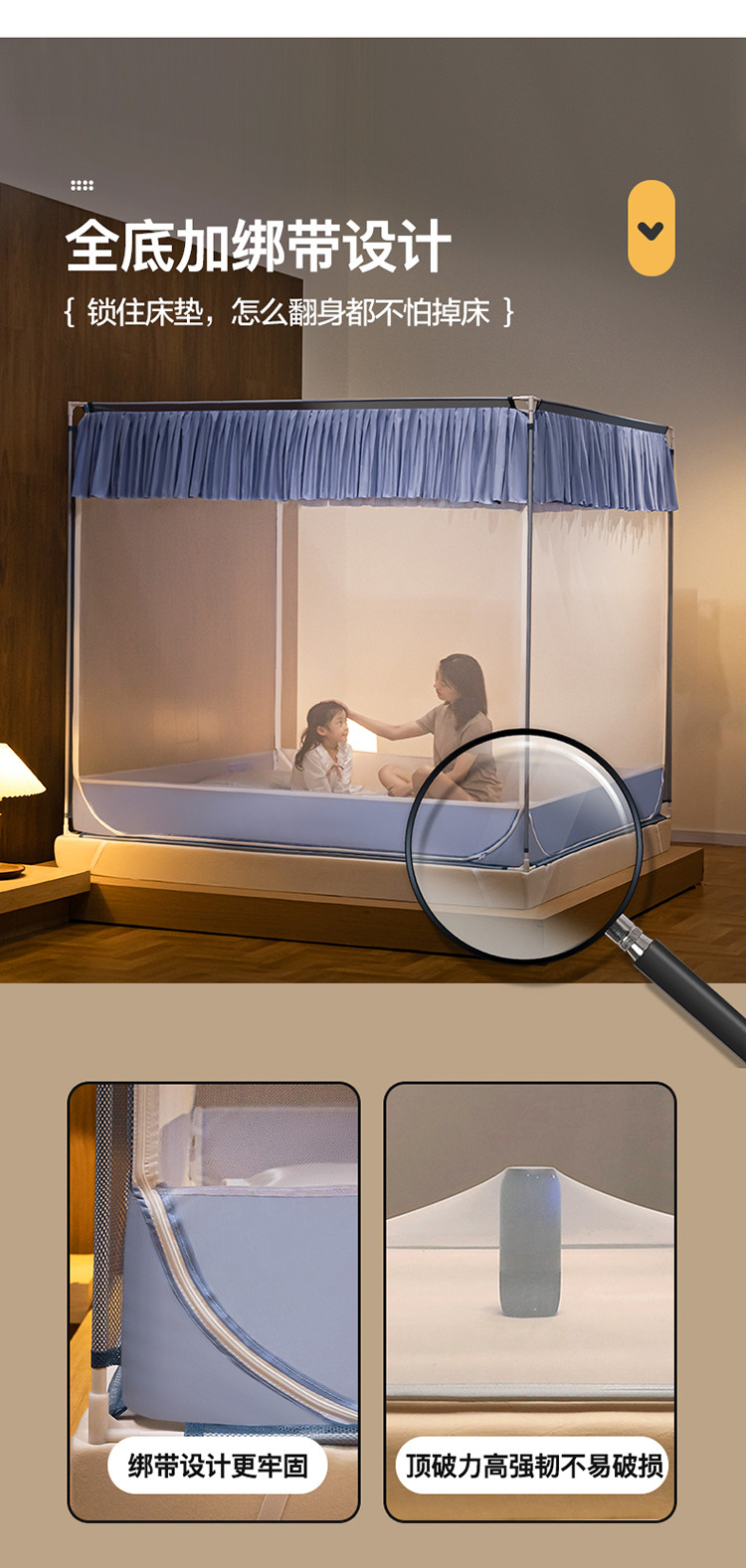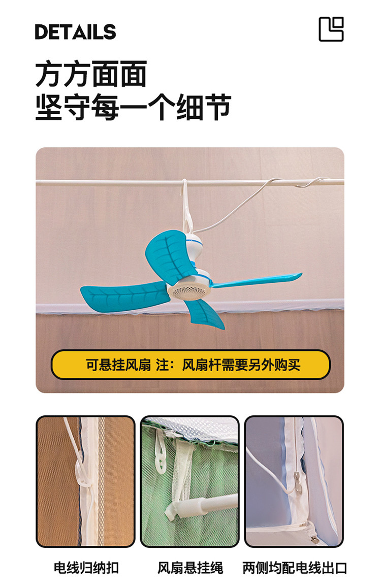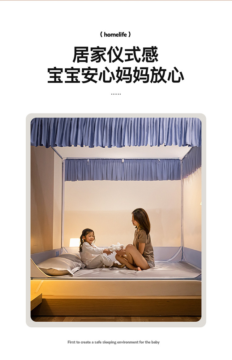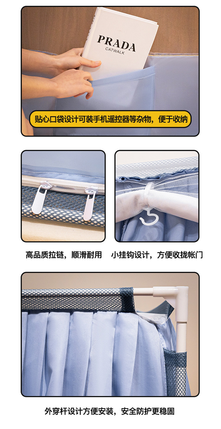 商品名称:青竹苑 2023纯色可拆洗冰丝凉席外穿三门全底防摔蚊帐 郁蓝色