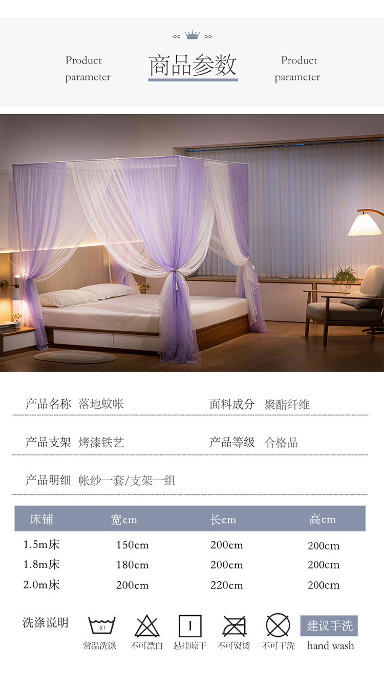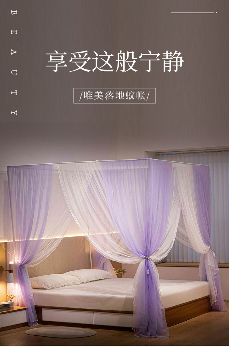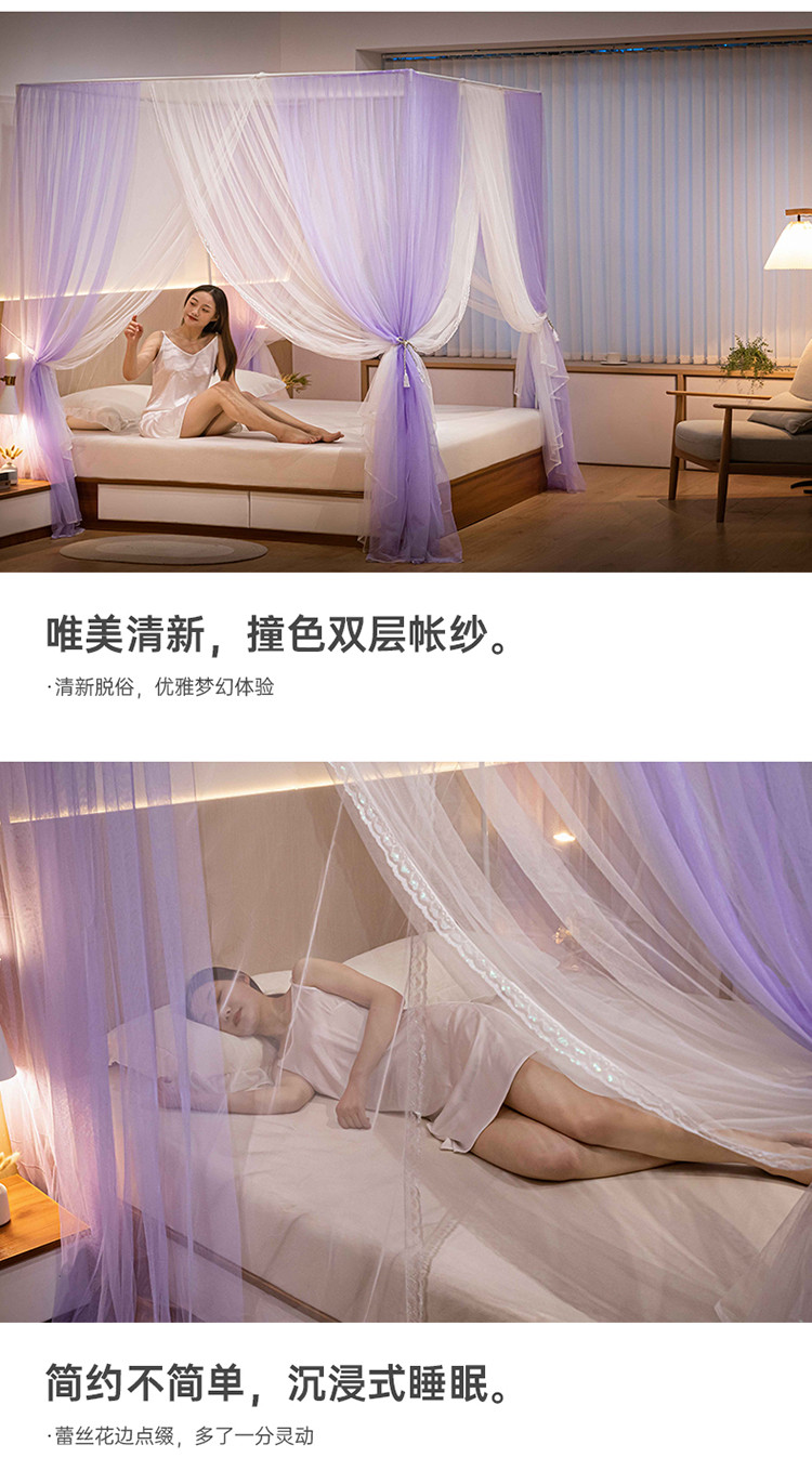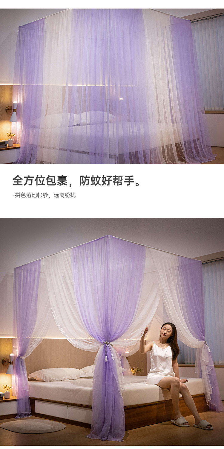 商品名称:青竹苑 2023双层拼色落地方帐铁艺烤漆宫廷蚊帐 云烟紫