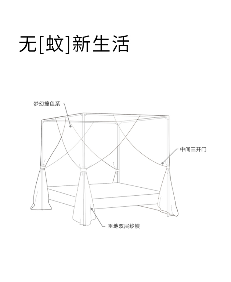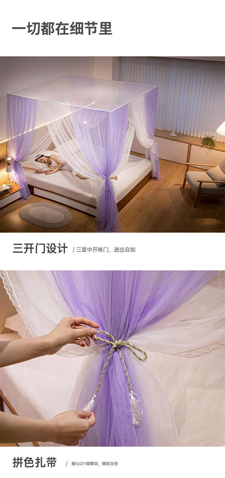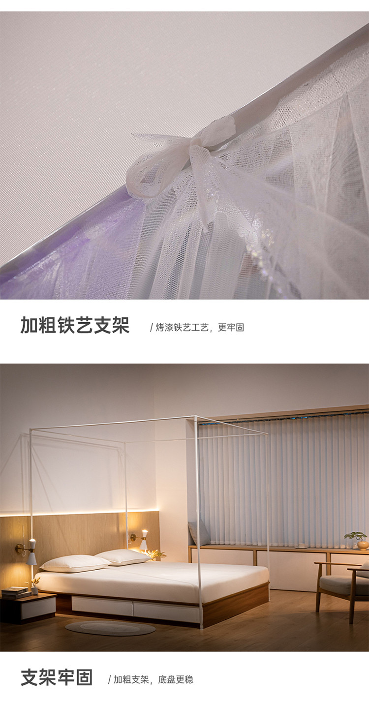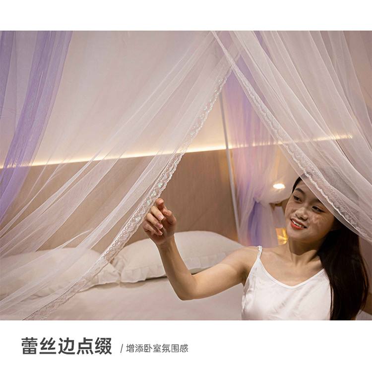 商品名称:青竹苑 2023双层拼色落地方帐铁艺烤漆宫廷蚊帐 云烟紫