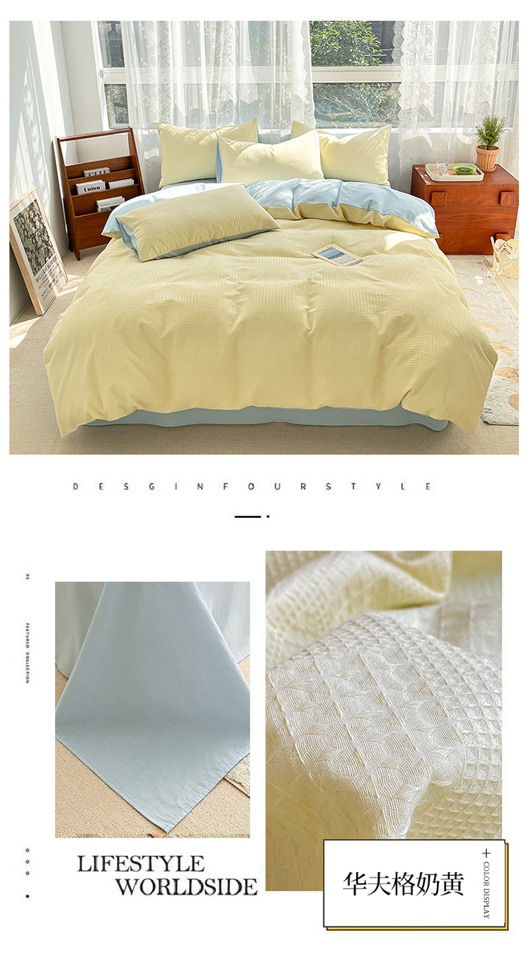 商品名称:蓝巢2023新款A版60支全棉华夫格B版40支全棉水洗棉四件套蜜格系列 华夫格奶黄