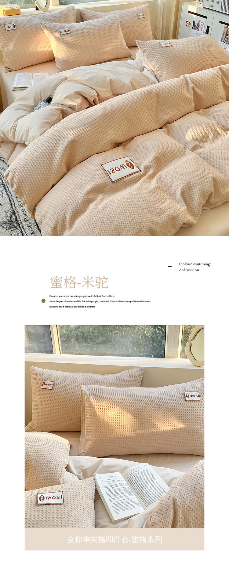 商品名称:蓝巢2023新款A版60支全棉华夫格B版40支全棉水洗棉四件套蜜格系列 蜜格-米驼