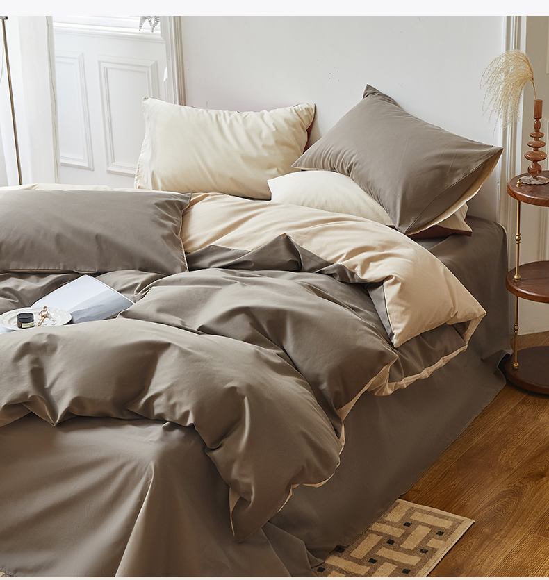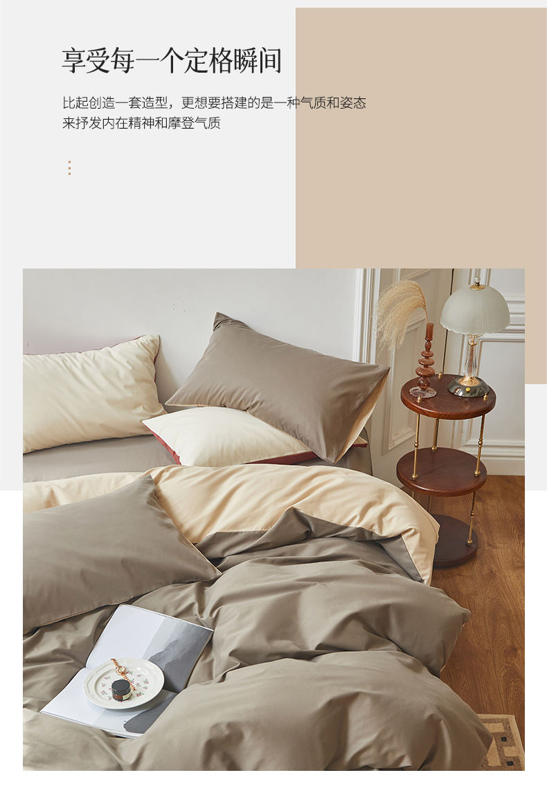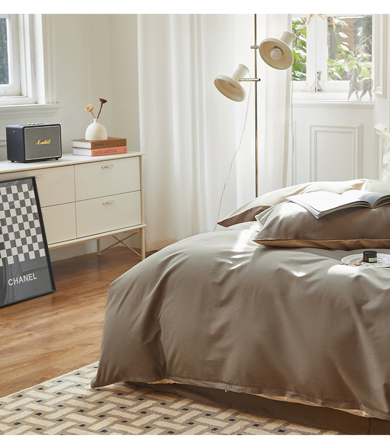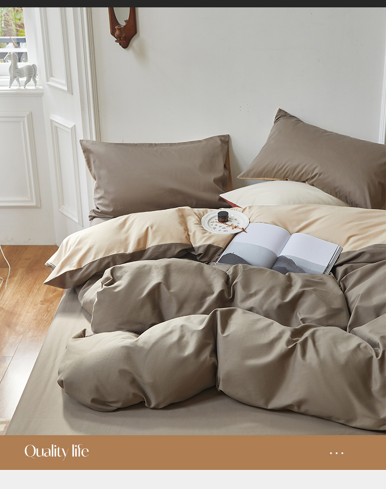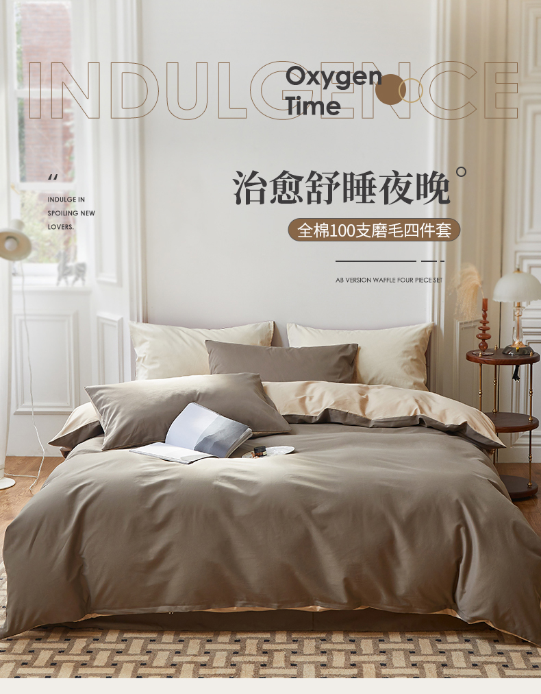 怡家居 2023新款全棉100支磨毛四件套 暗咖-浅咖其