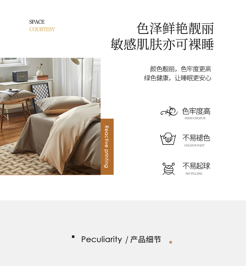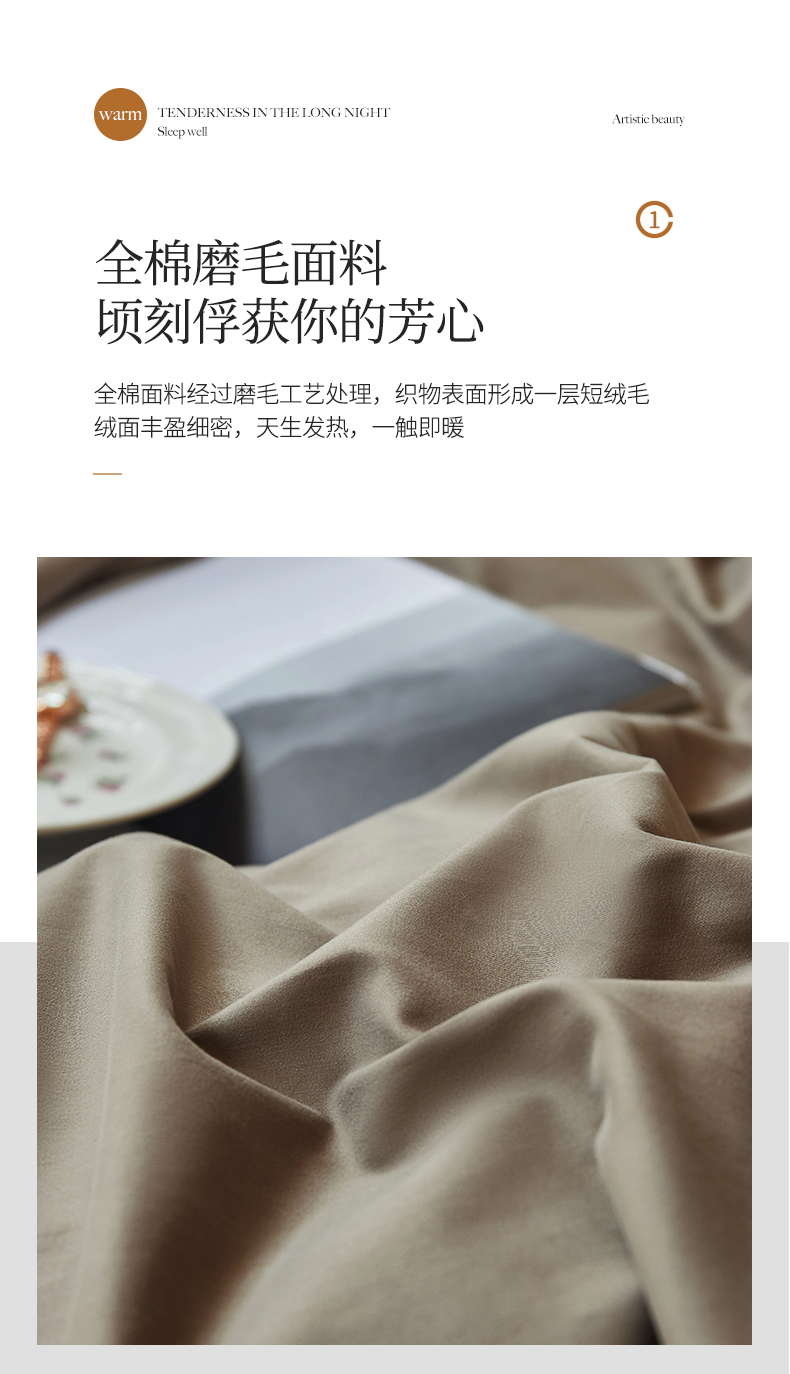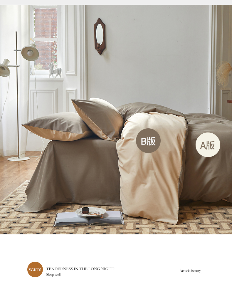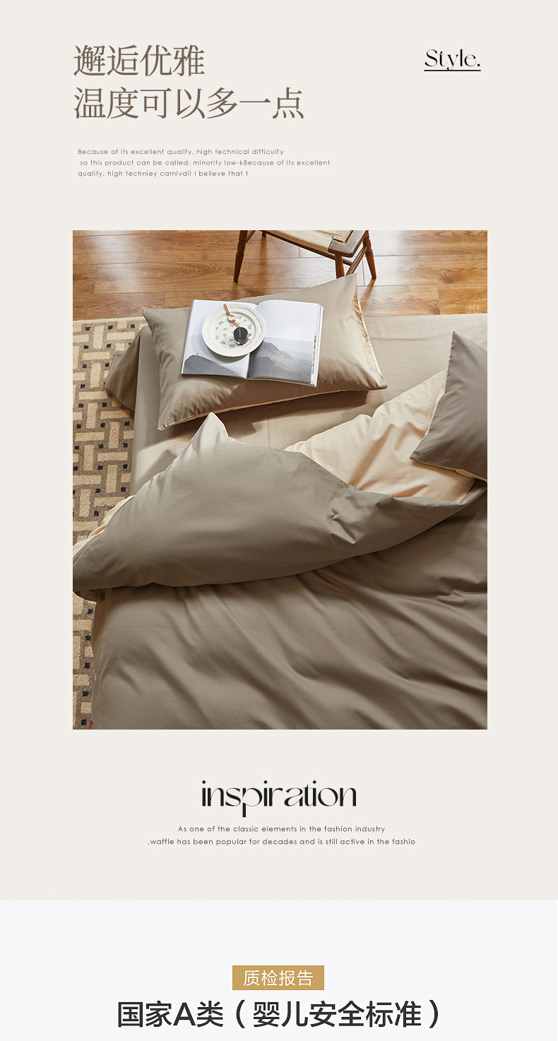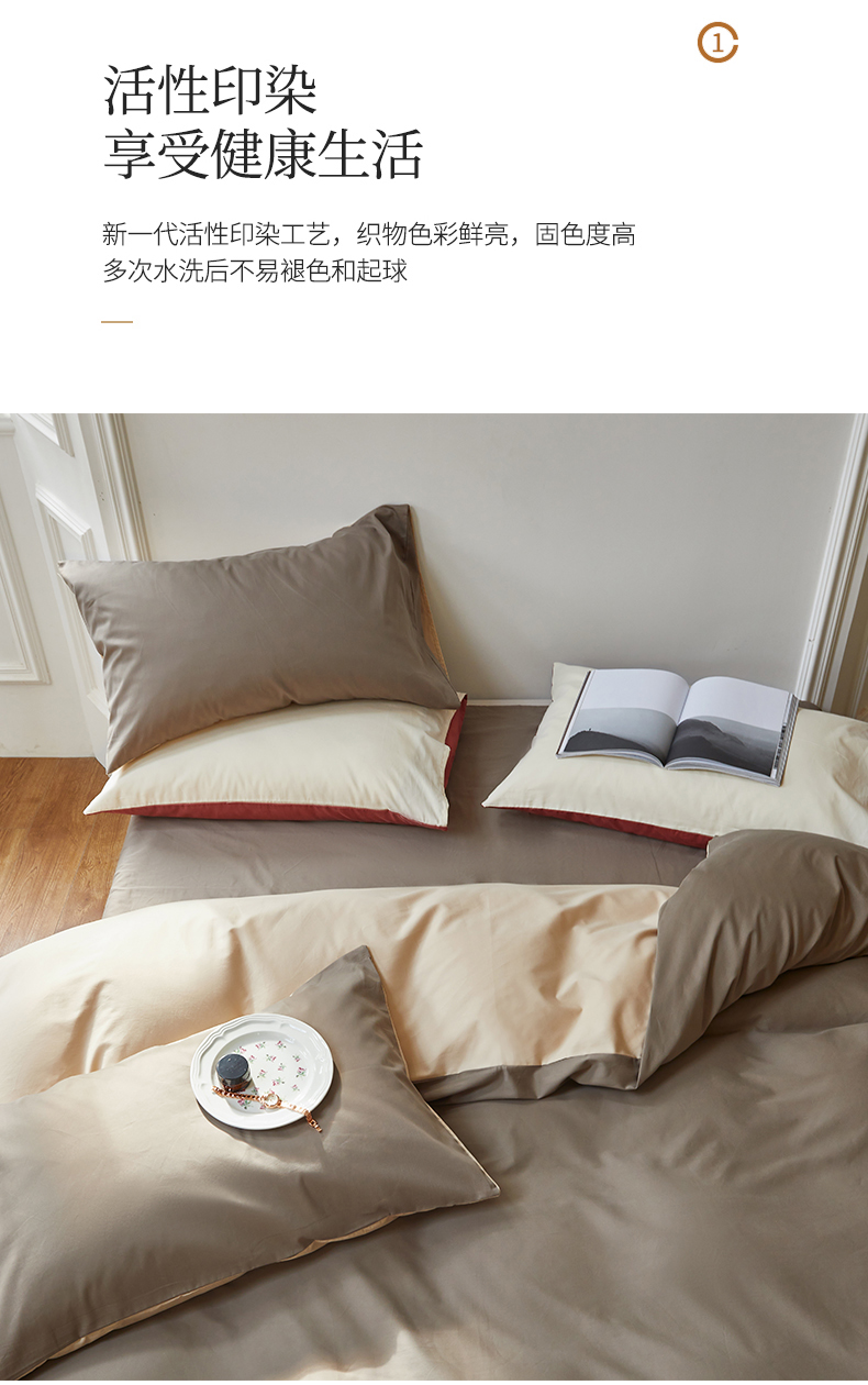 怡家居 2023新款全棉100支磨毛四件套 暗咖-浅咖其