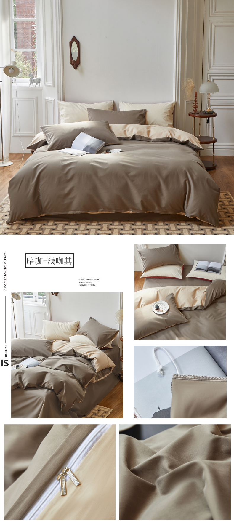 商品名称:怡家居 2023新款全棉100支磨毛四件套 暗咖-浅咖其
