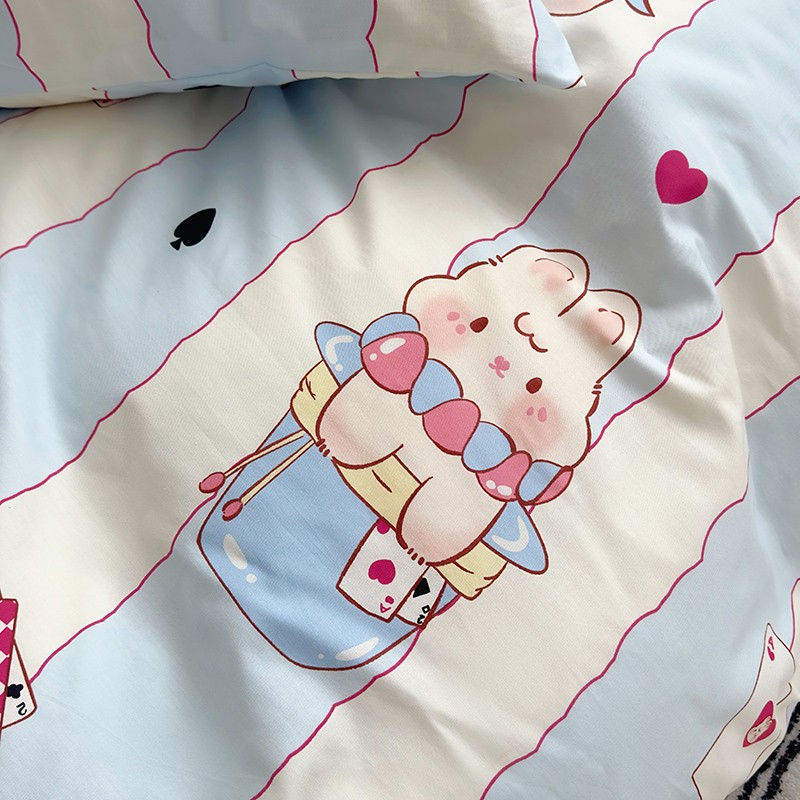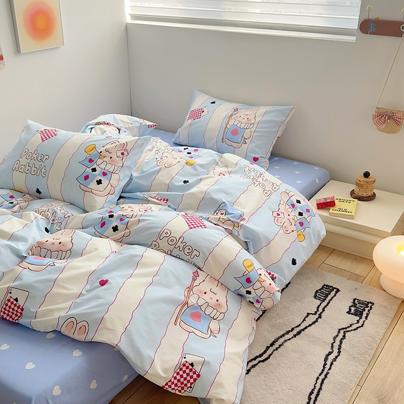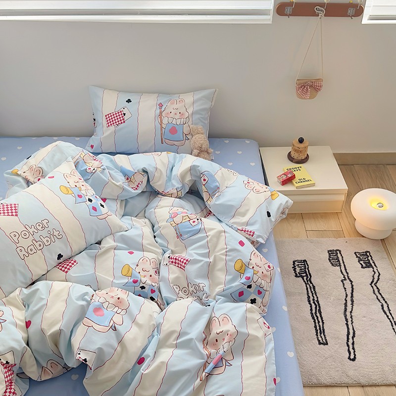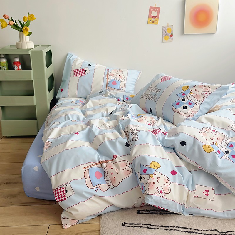 商品名称:怡家居 2023春夏新款全棉卡通系列四件套 爱心扑克兔