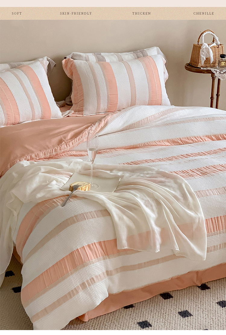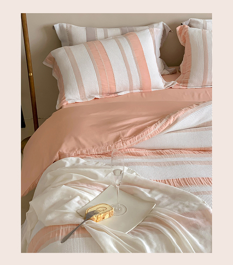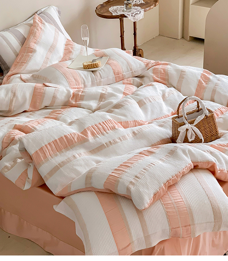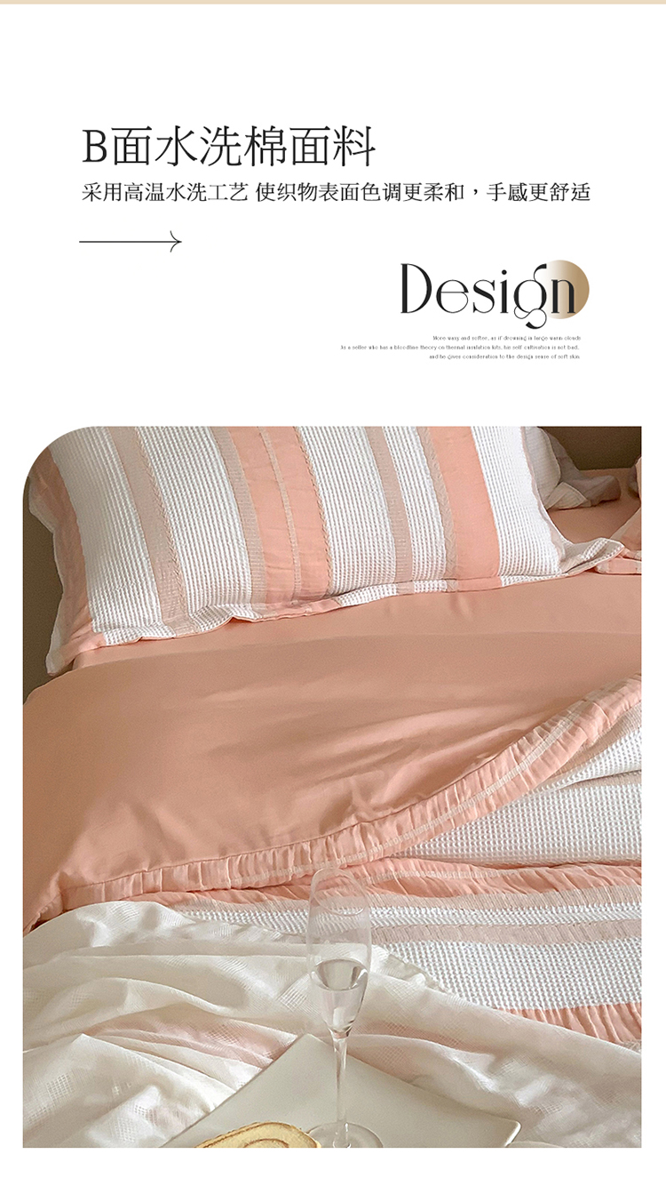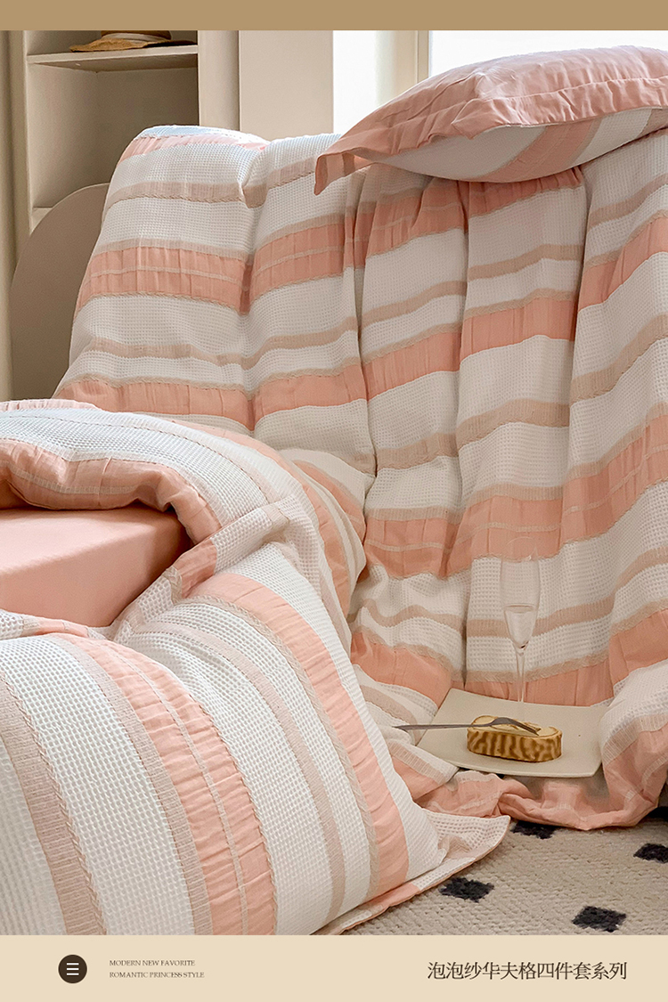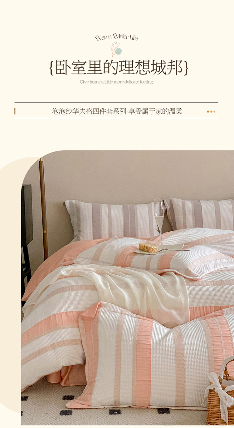 名品优仓 2023新款泡泡纱华夫格四件套 西尔风铃桔