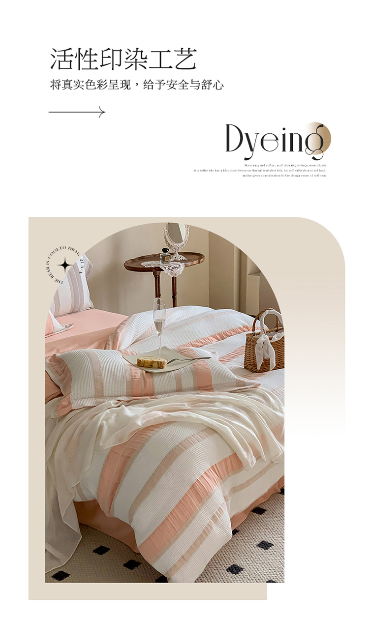 (总)名品优仓2023款水洗棉三层纱提花四件套-狡花系列,狡花白,狡花豆粉,狡花黄,狡花蓝色,狡花绿,狡花少女粉