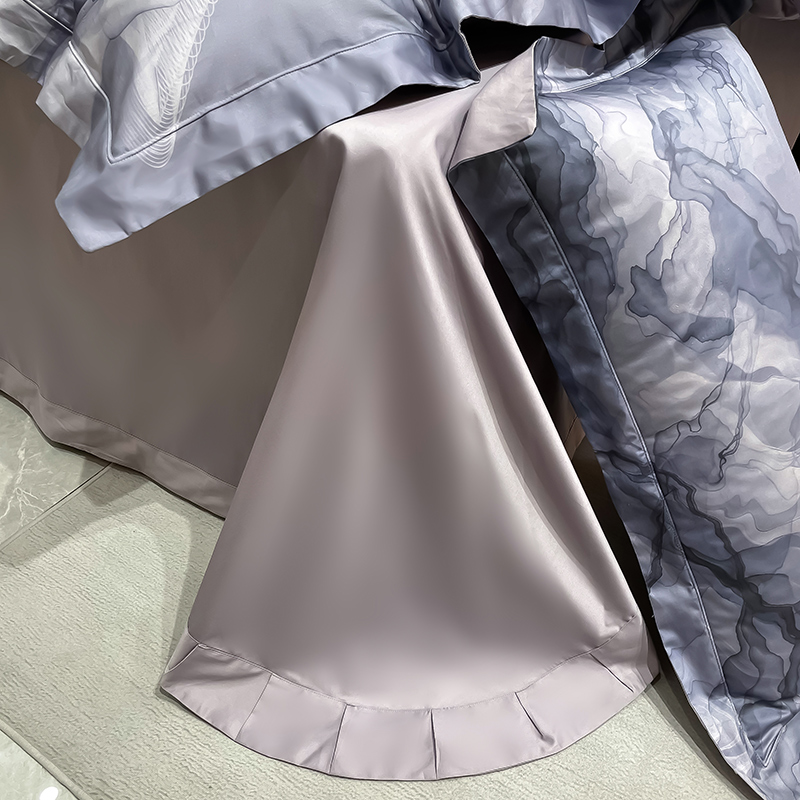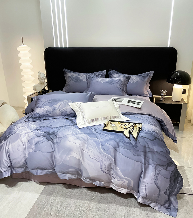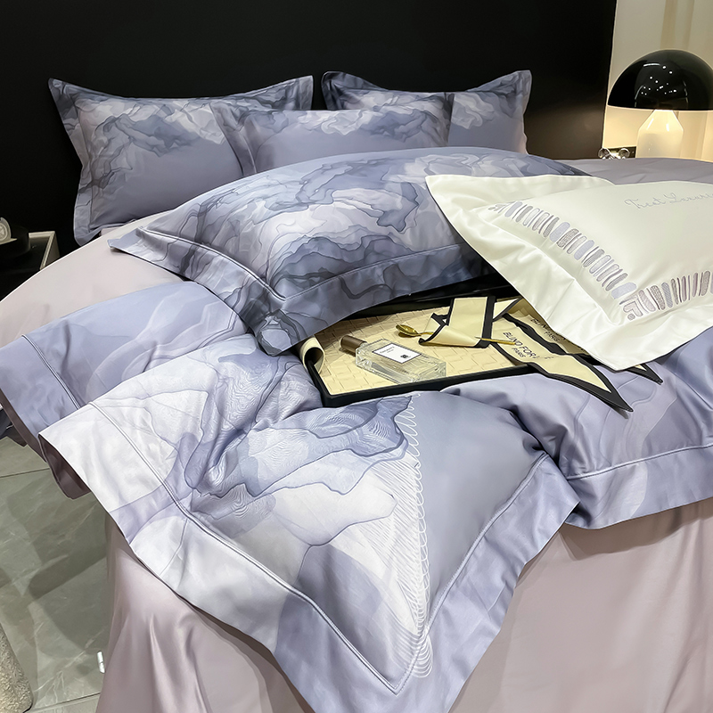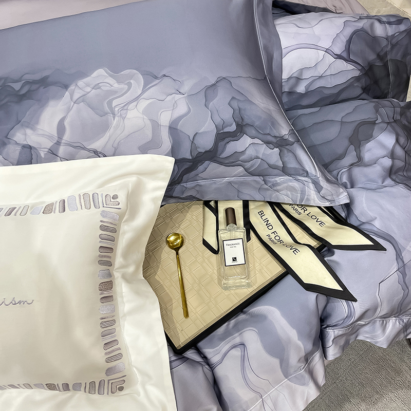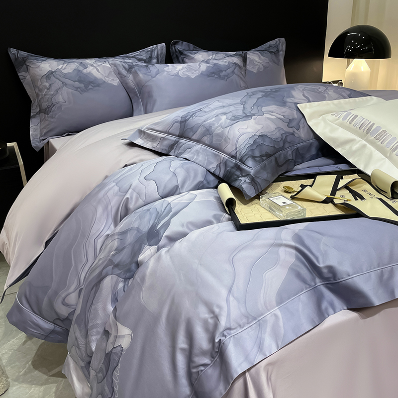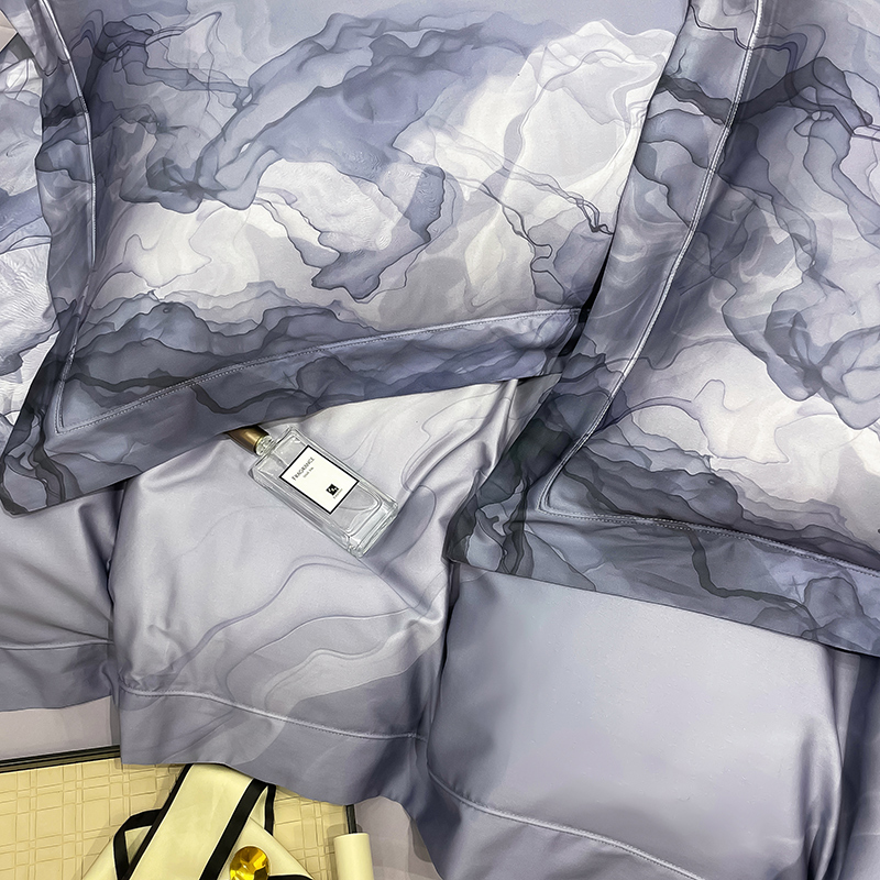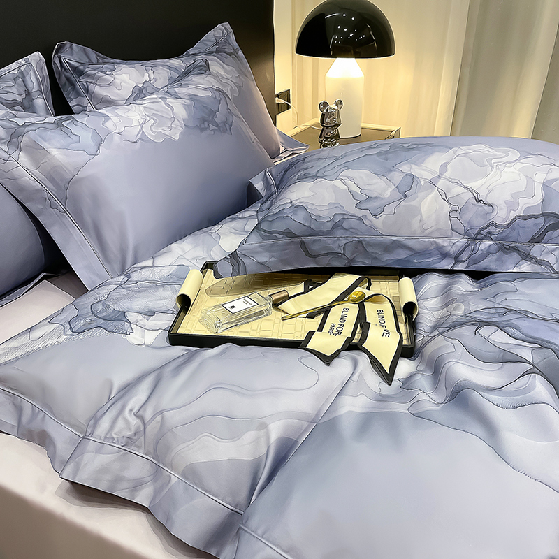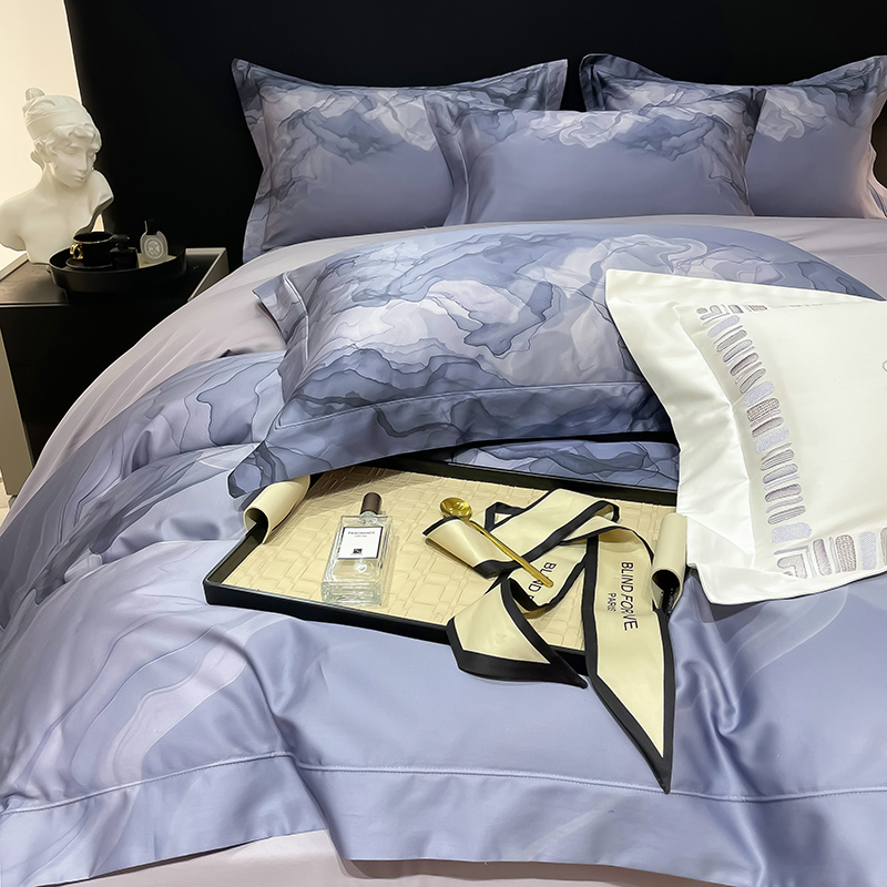 若未家居2023新款轻奢意式50支全棉长绒棉四件套-水墨 烟蓝