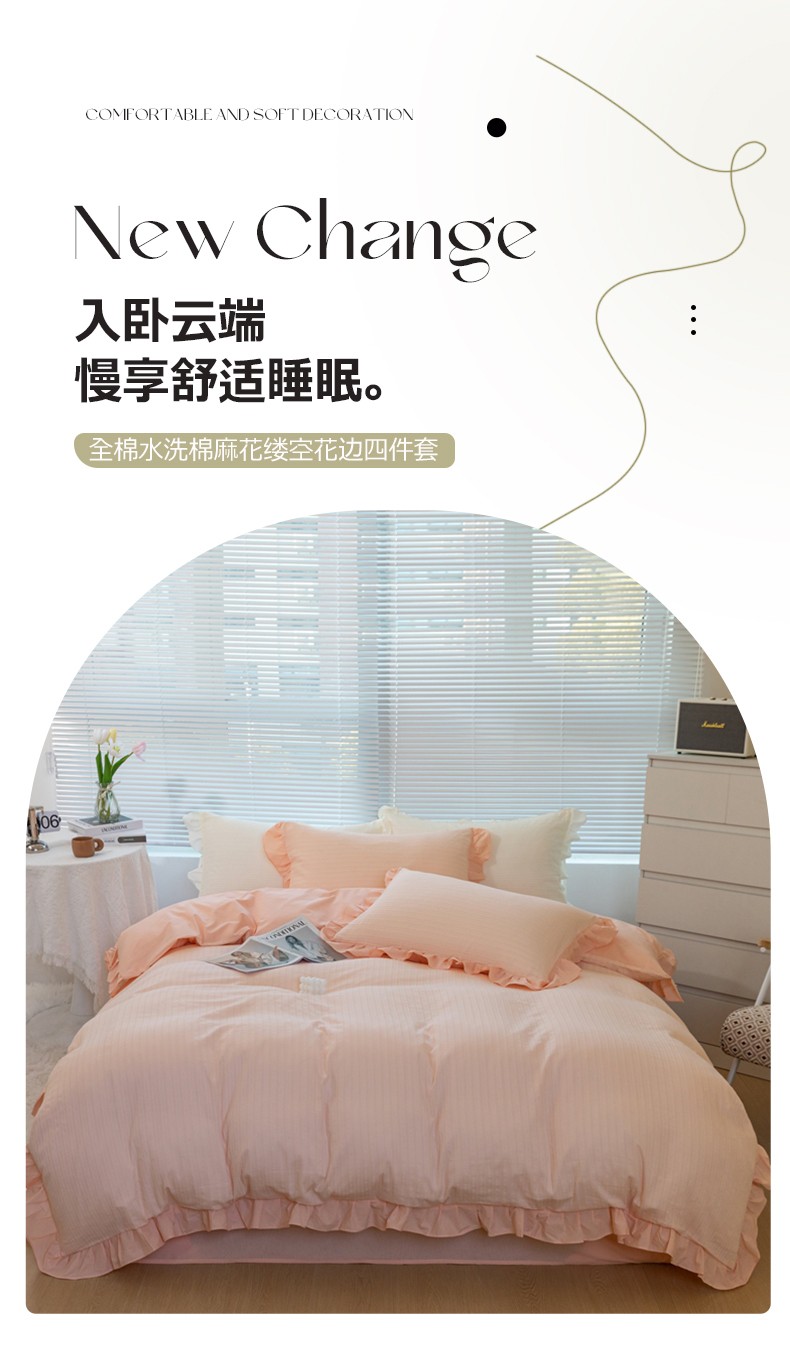 当前位置: 91家纺网 > 商品网购 > 床品套件 > 四件套 > 全棉活性四件套 > (总)品乐2024纯色全棉缕空麻花水洗棉花边四件套