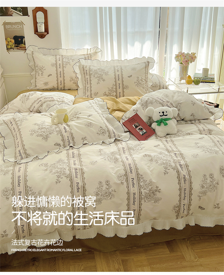 桃子家居 2023新款法式复古花卉花边纯棉系列四件套 花边-巴黎花园
