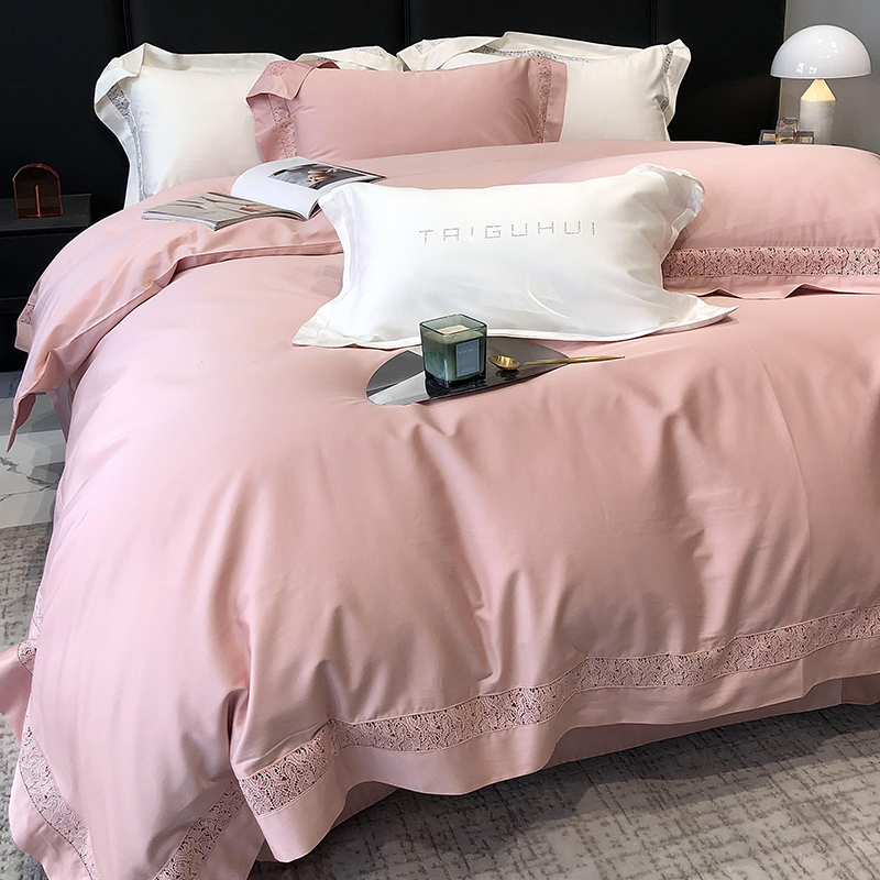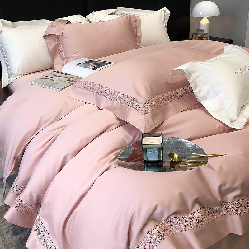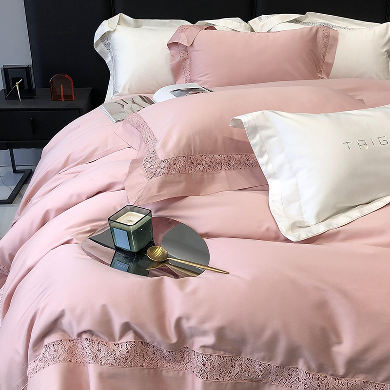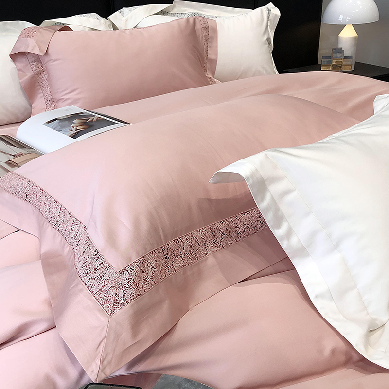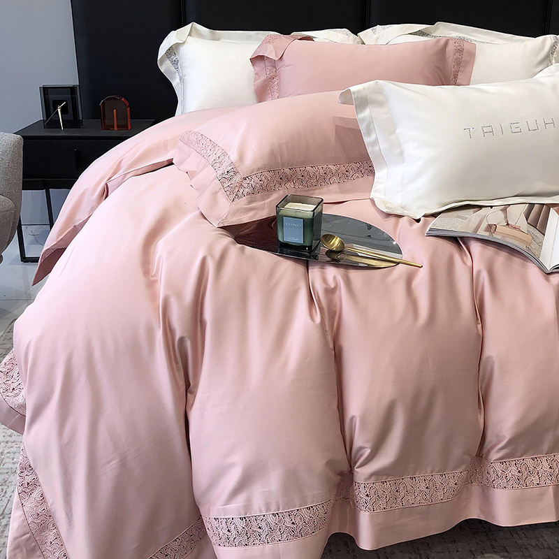 太古汇 2023新款A类全棉法式镂空轻奢四件套-格蕾丝系列 格蕾丝-粉色