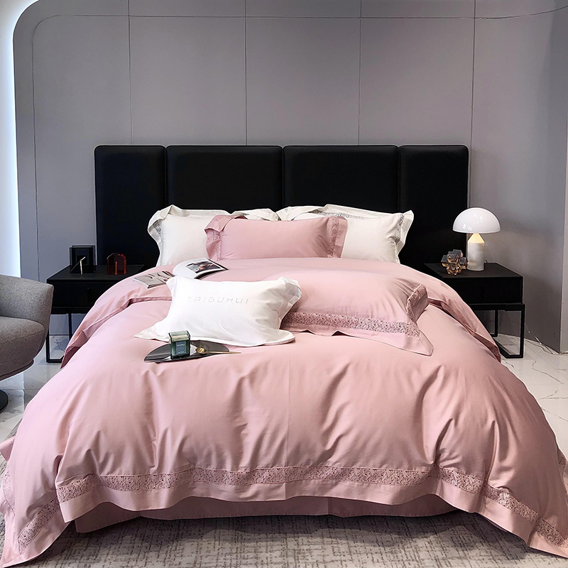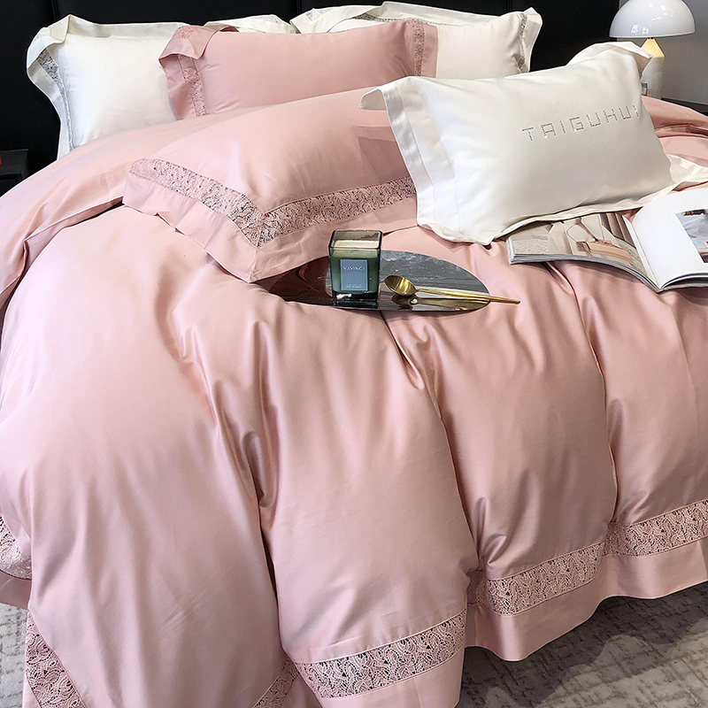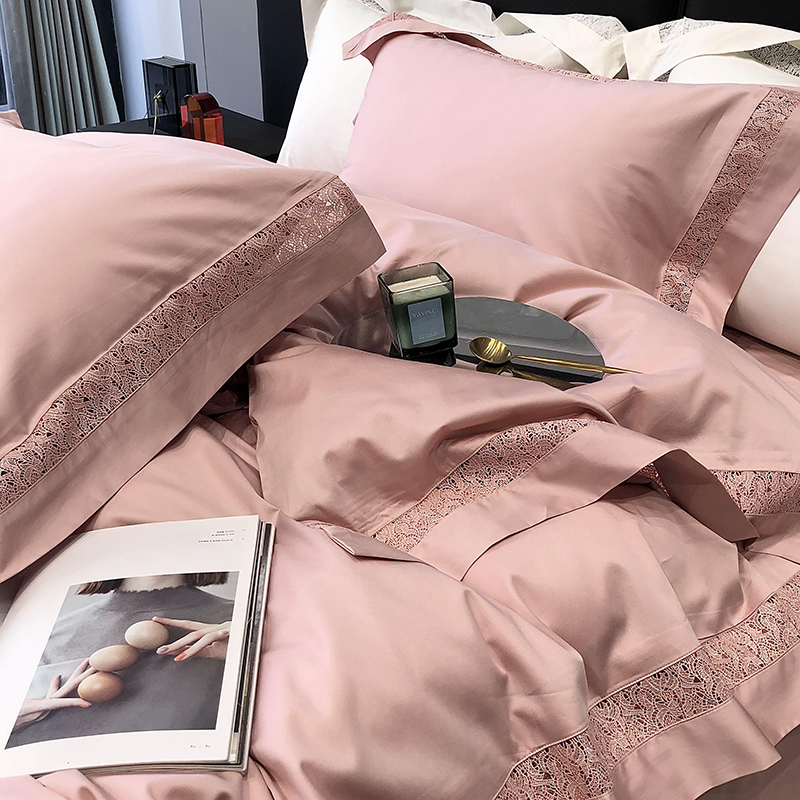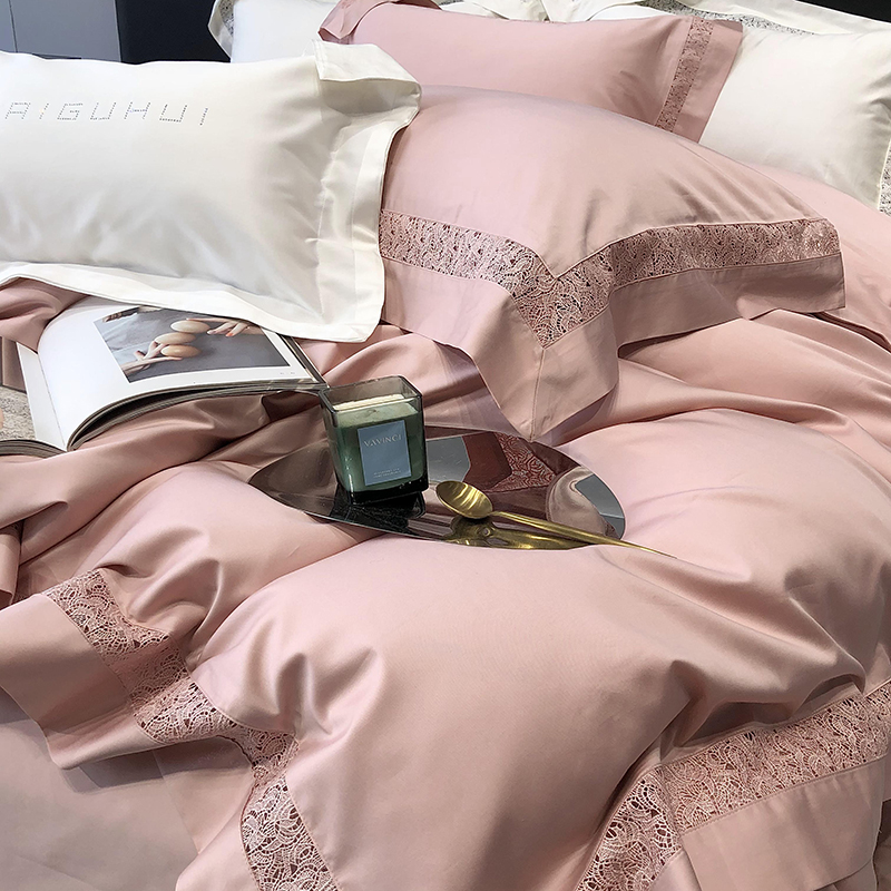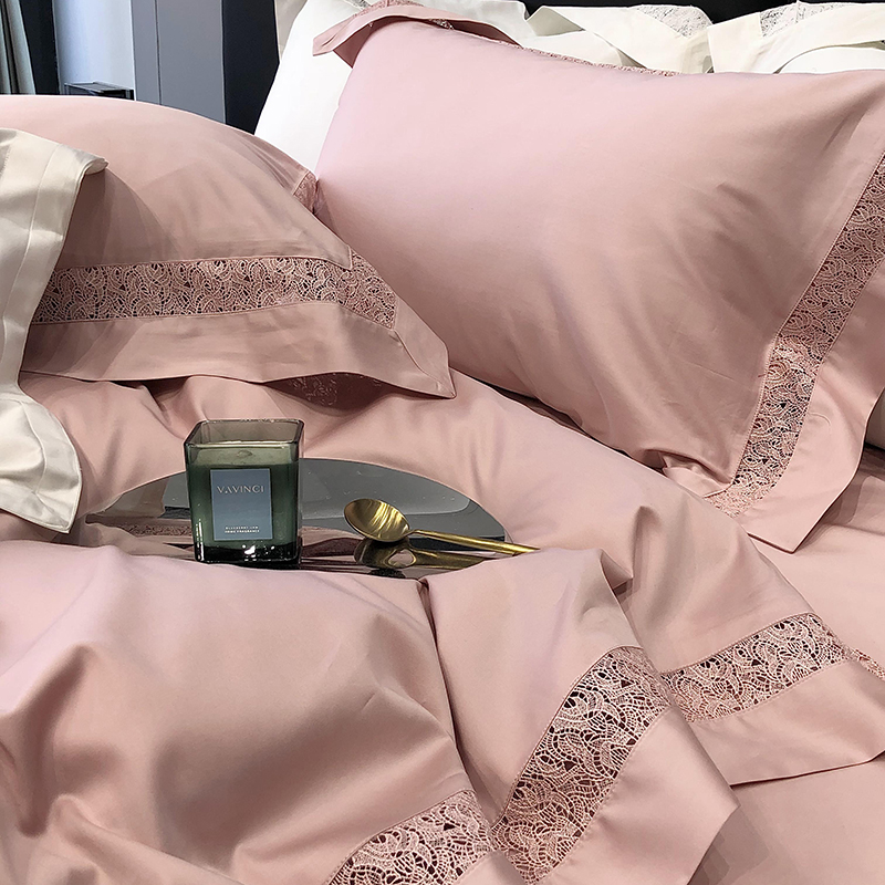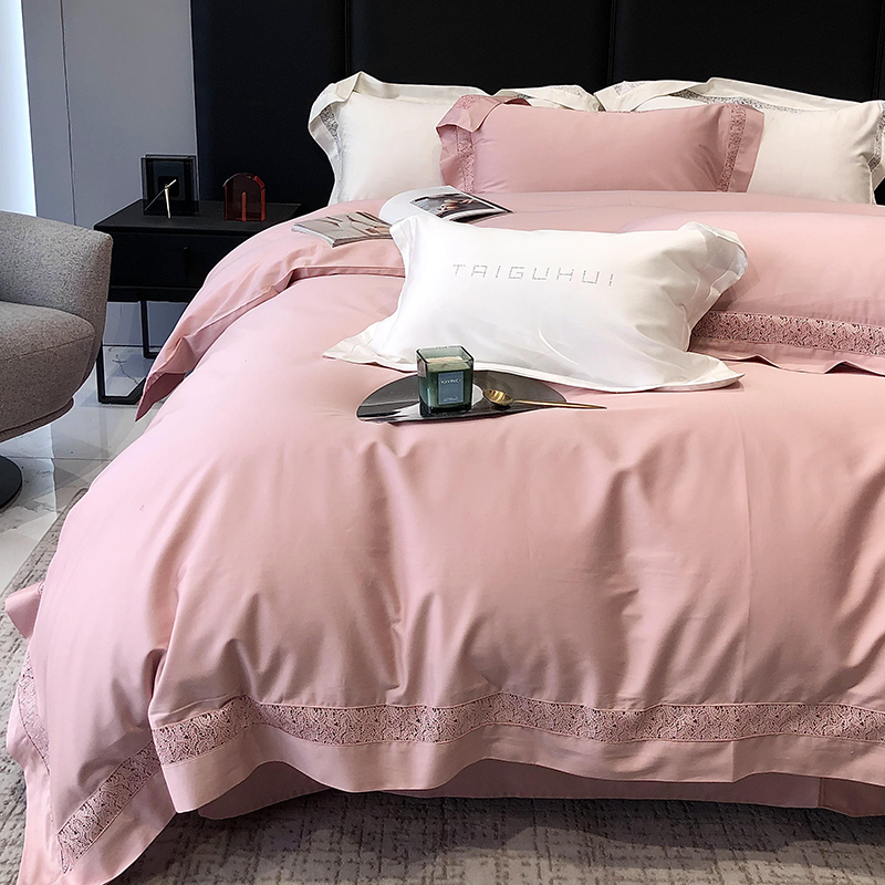太古汇 2023新款A类全棉法式镂空轻奢四件套-格蕾丝系列 格蕾丝-粉色
