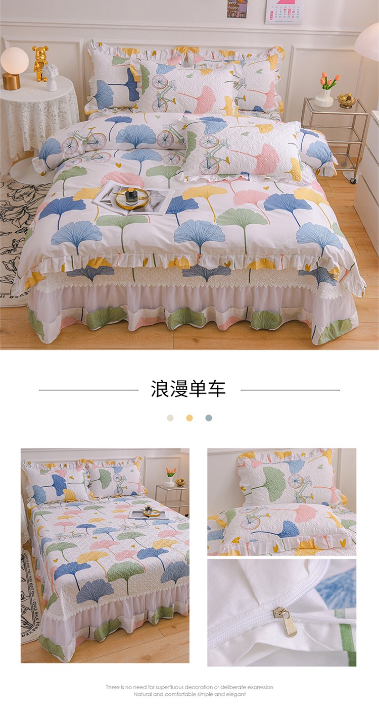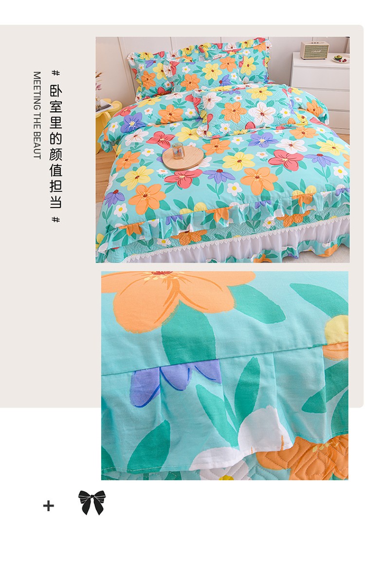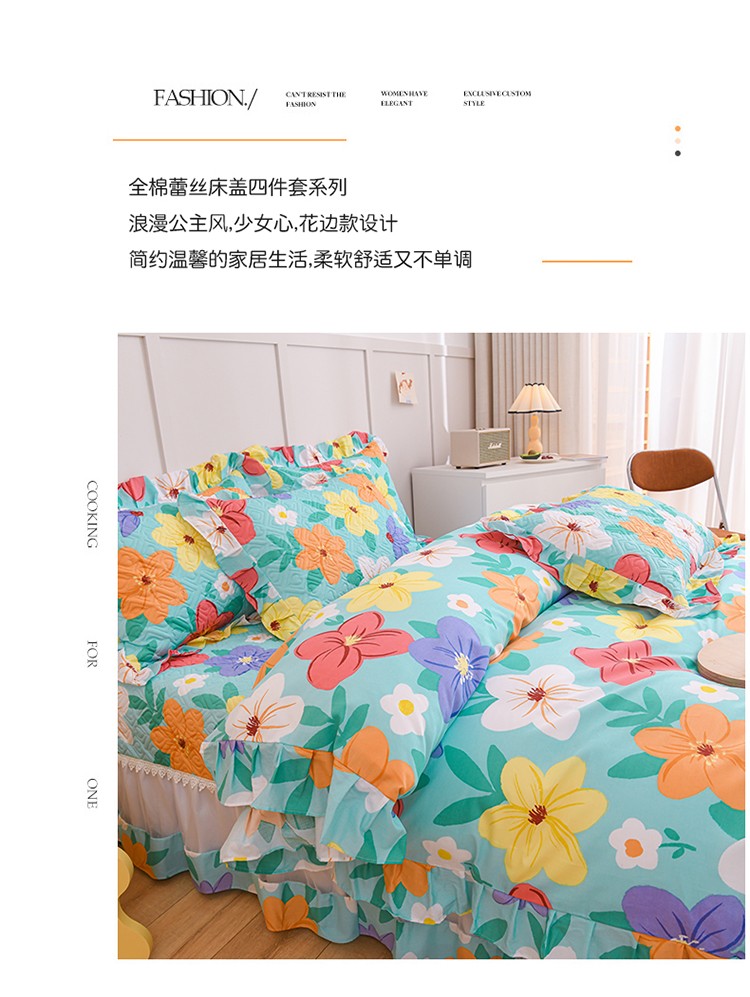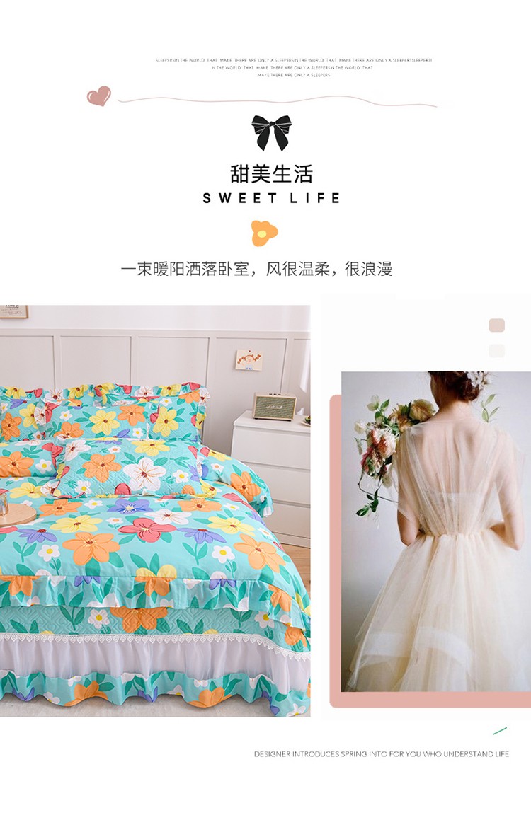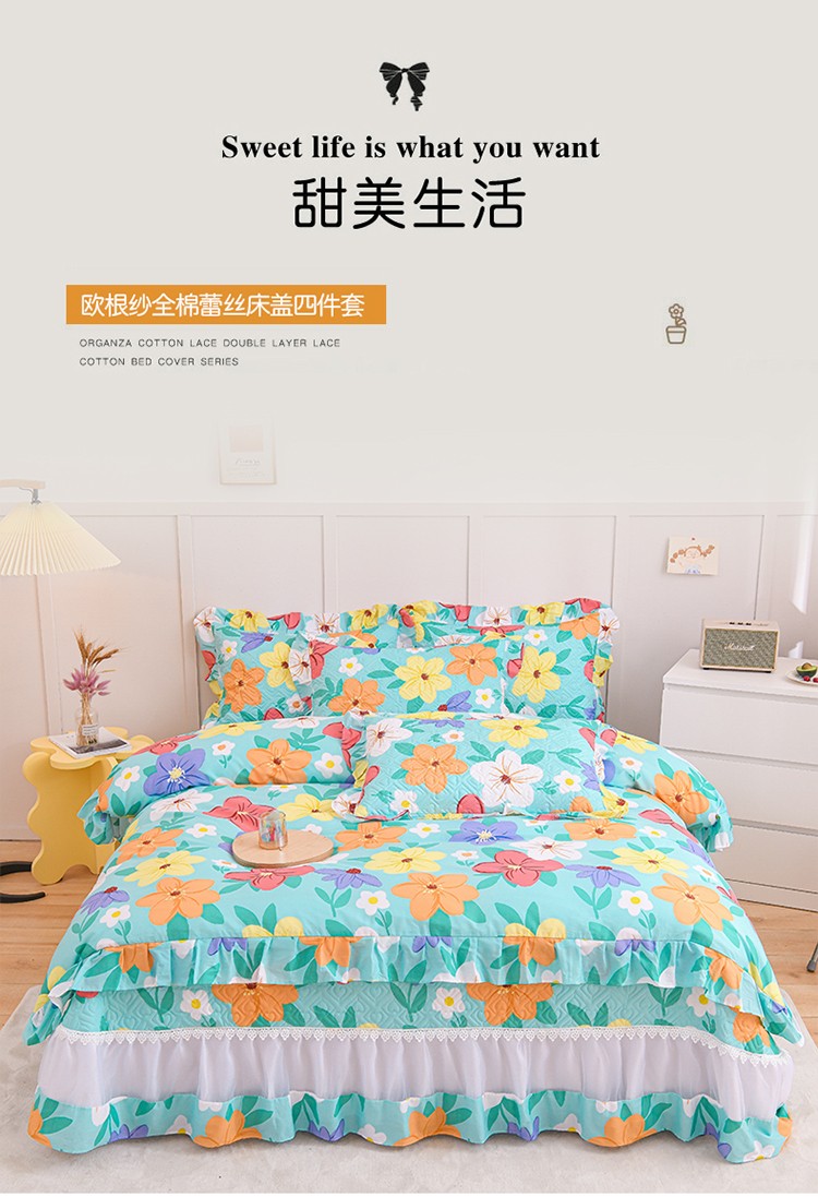 商品名称:(总)2025公主风全棉花边床盖四件套 欧根纱夹棉纯棉三件套直播推荐