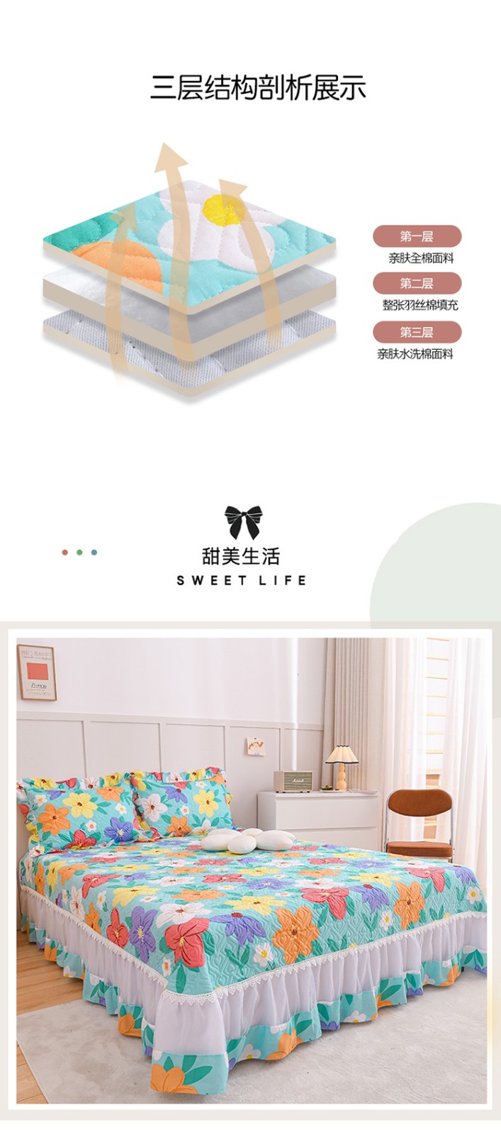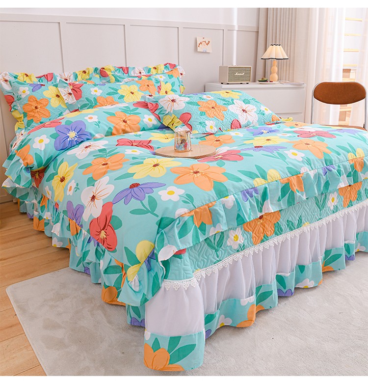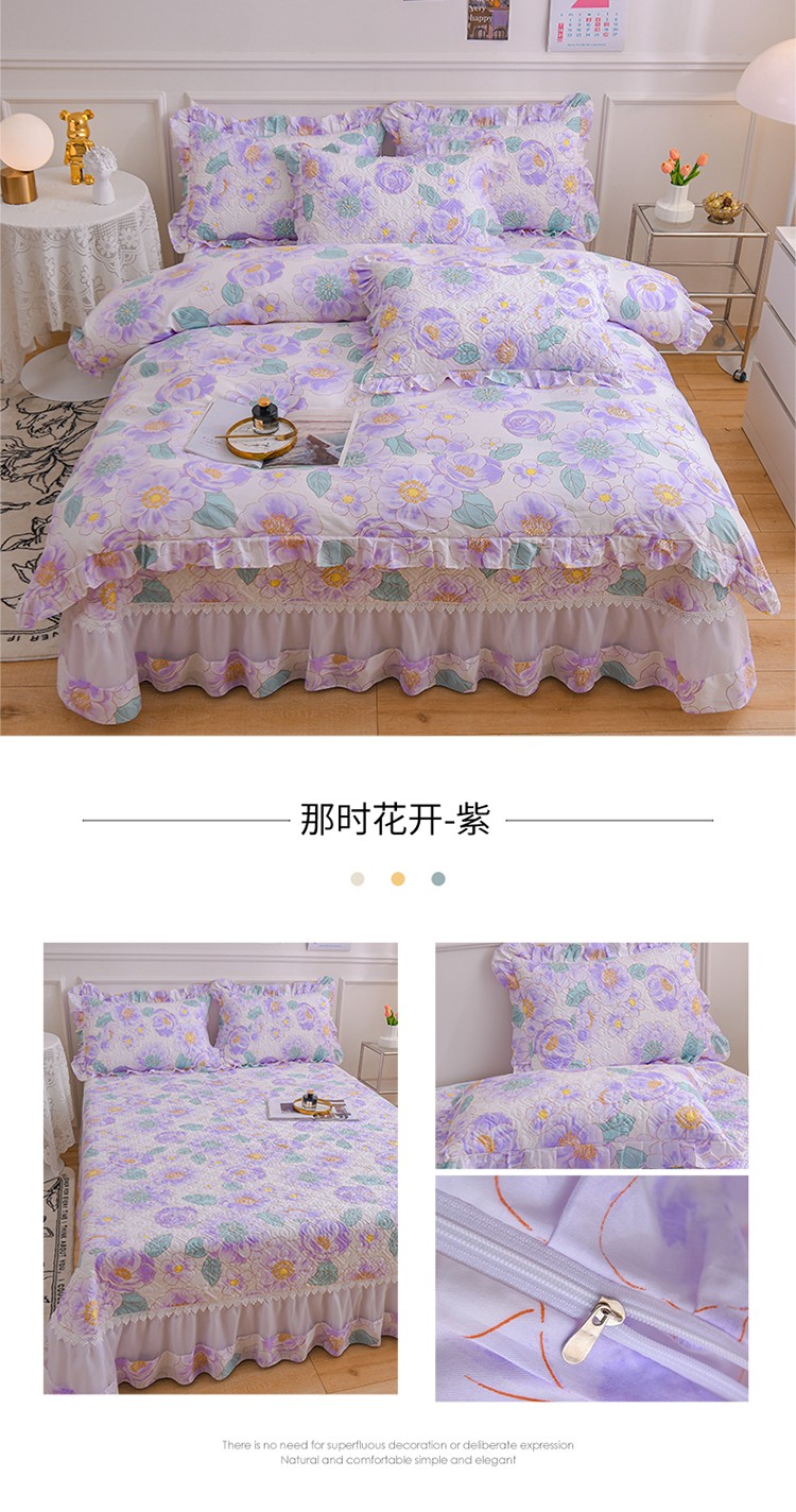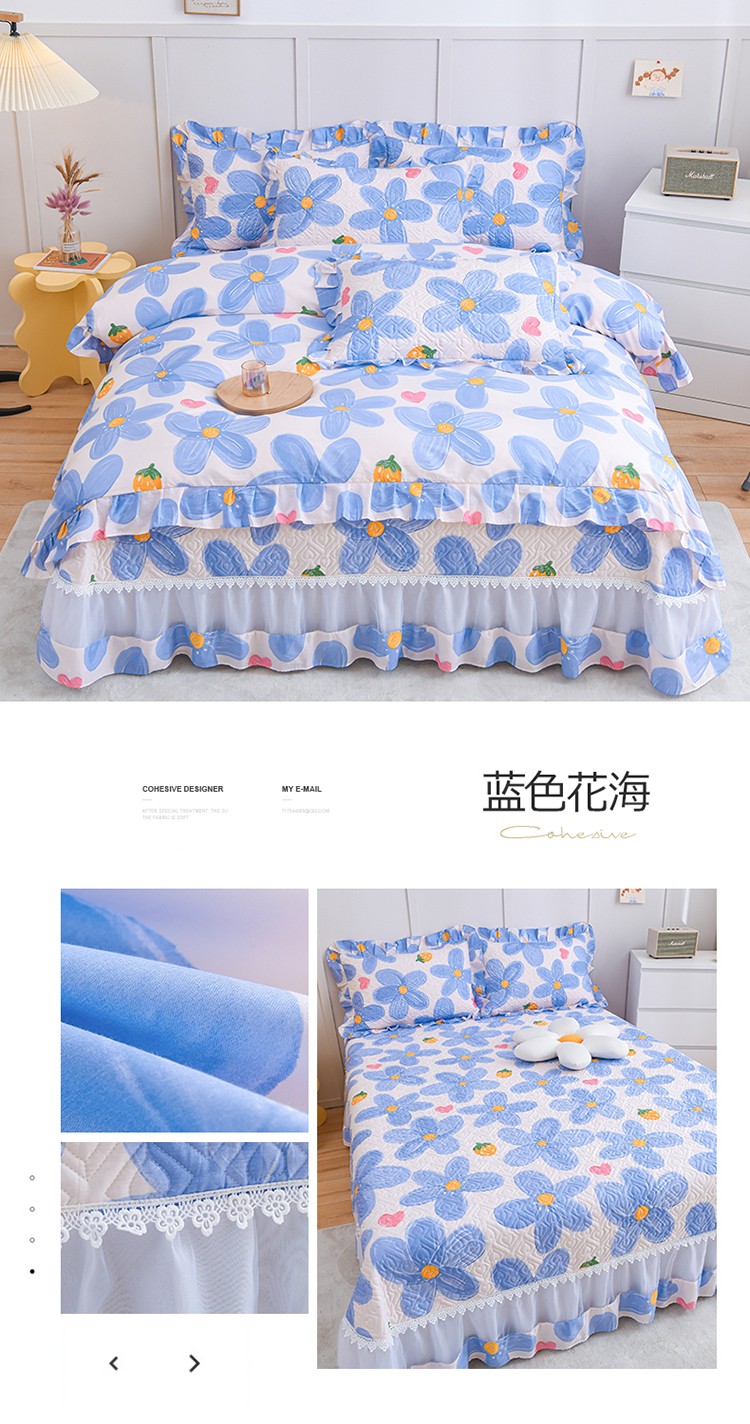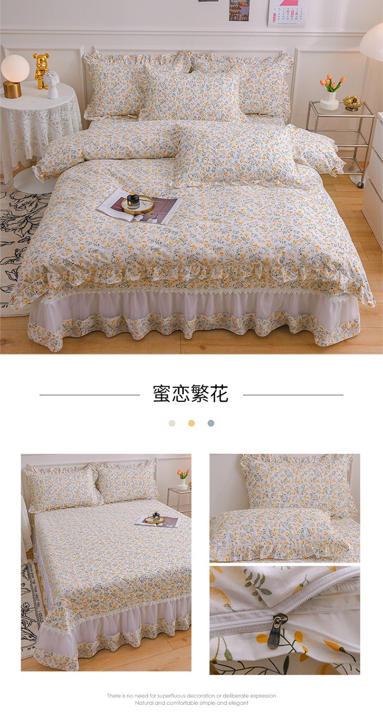 商品名称:(总)2025公主风全棉花边床盖四件套 欧根纱夹棉纯棉三件套直播推荐
