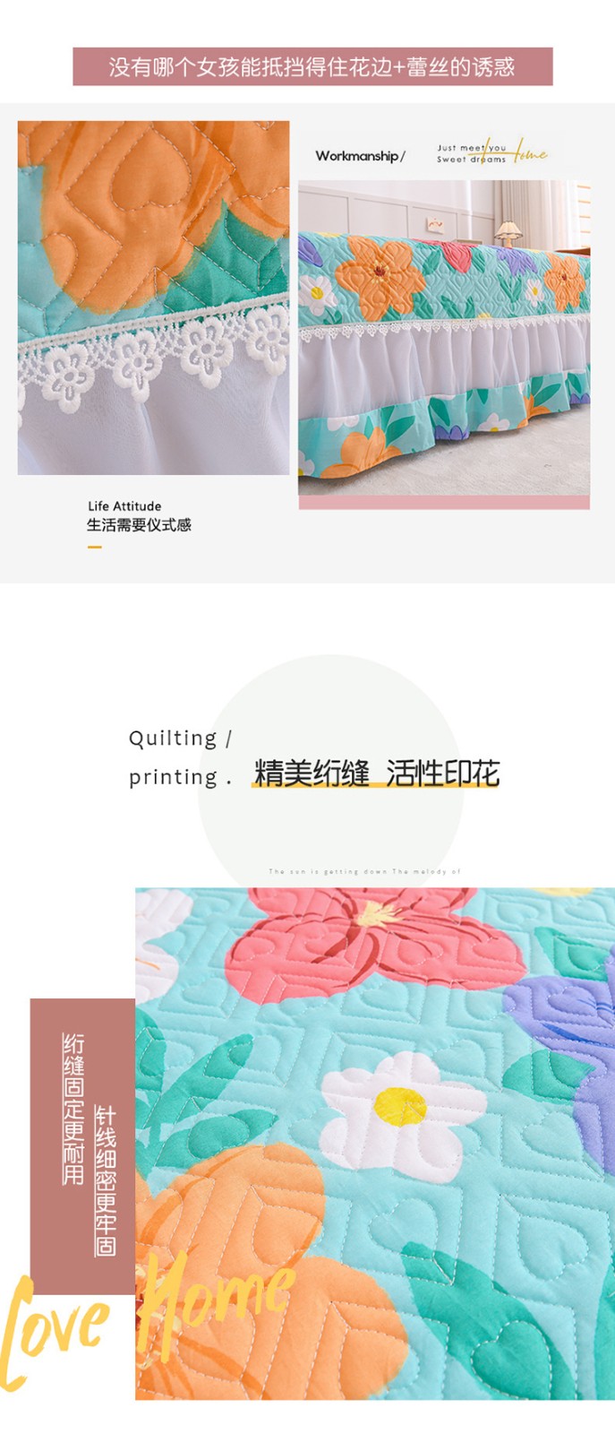 (总)2025云朵棉多功能印花全夹棉床裙四件套 夹棉被套空调被蕾丝花边加棉床裙三件套枕套夏被单品,繁花,樱桃,碧瑶,兰亭,蘑菇,牡丹,羽叶,倩影