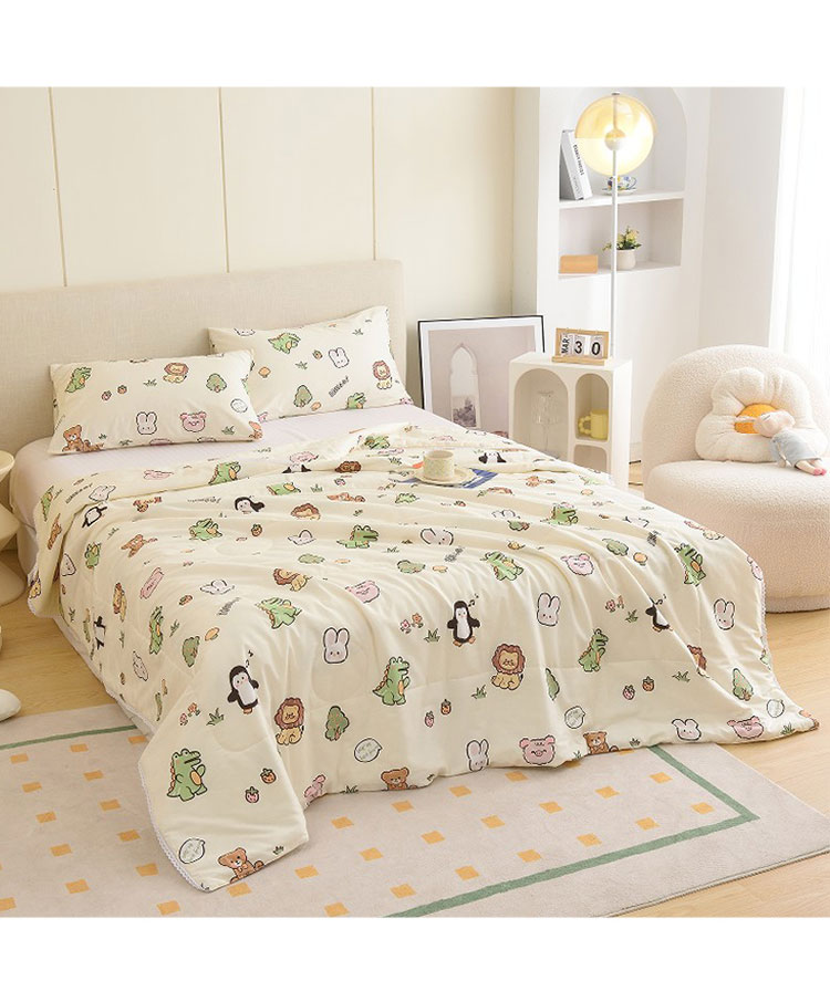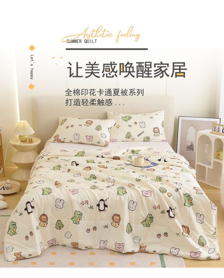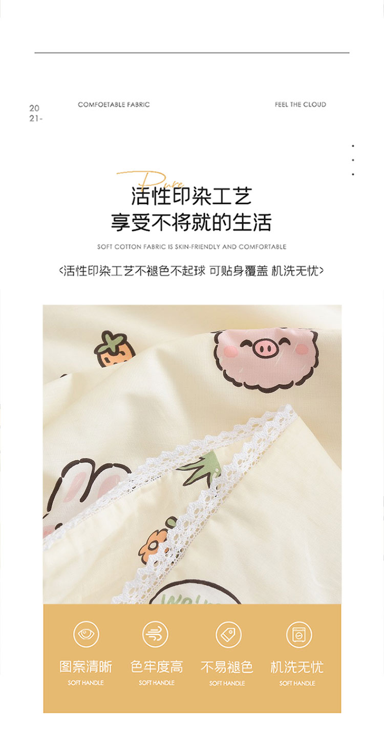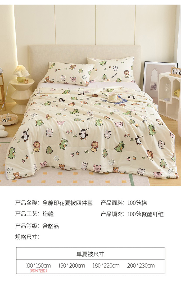 德芙 2023新款全棉印花卡通夏被四件套 野餐派对