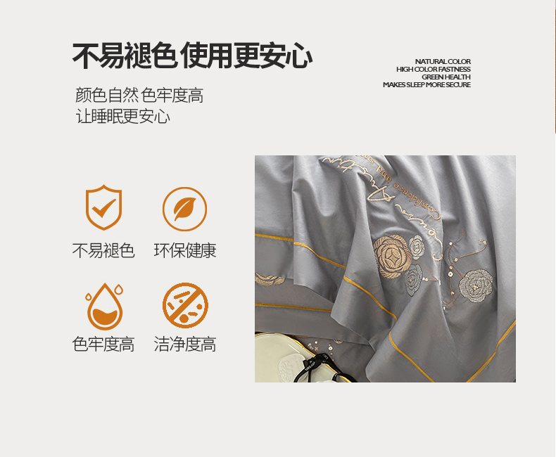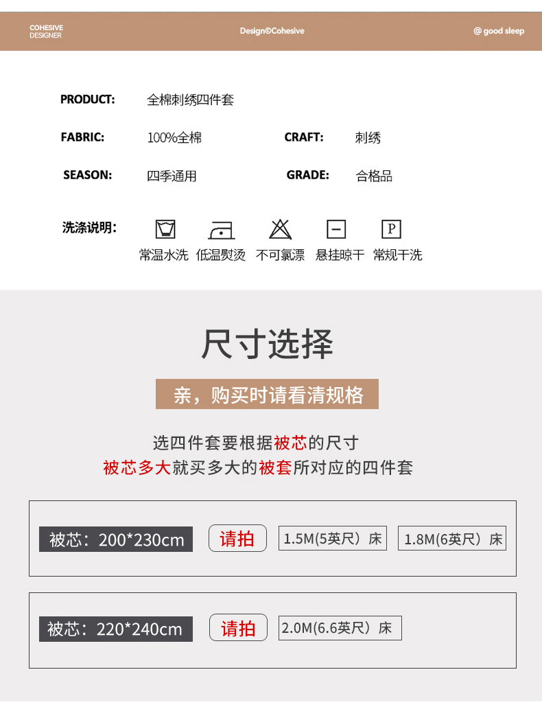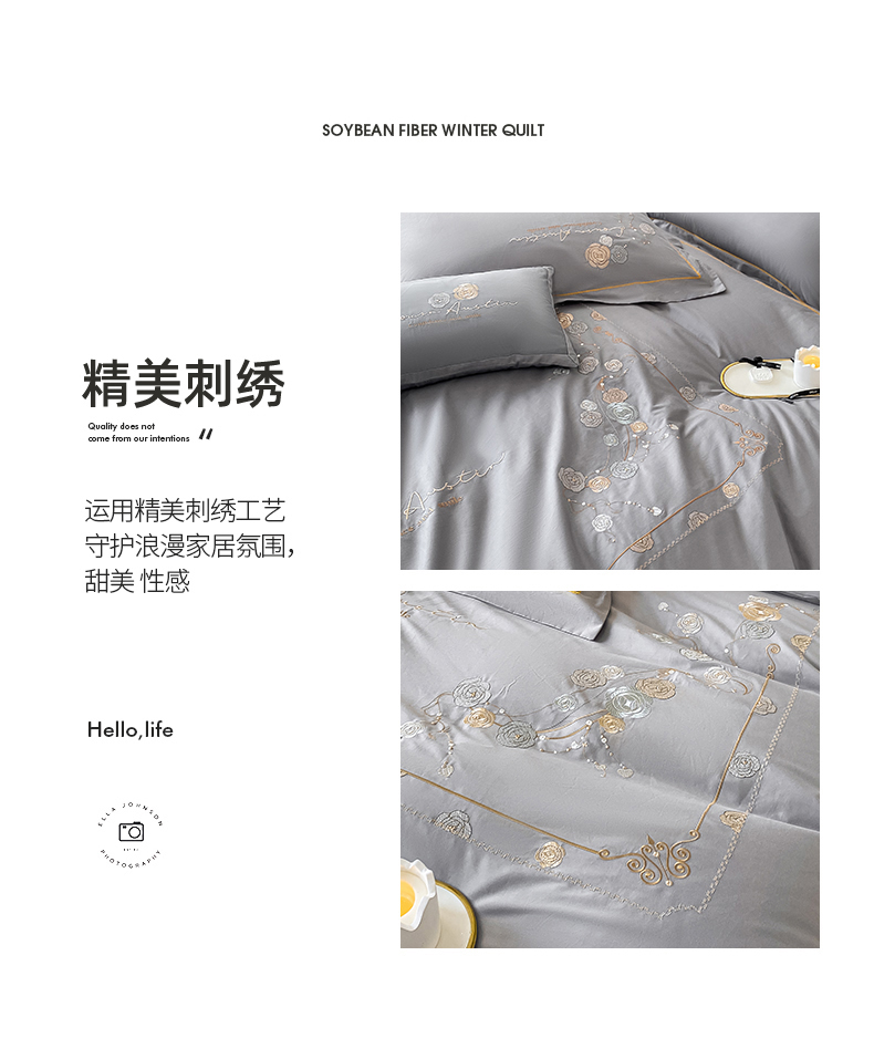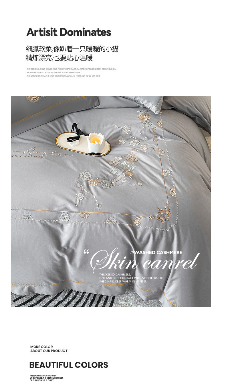 商品名称:绒世界2024新款全棉刺绣烟雨系列四件套 一袭烟雨-高级灰