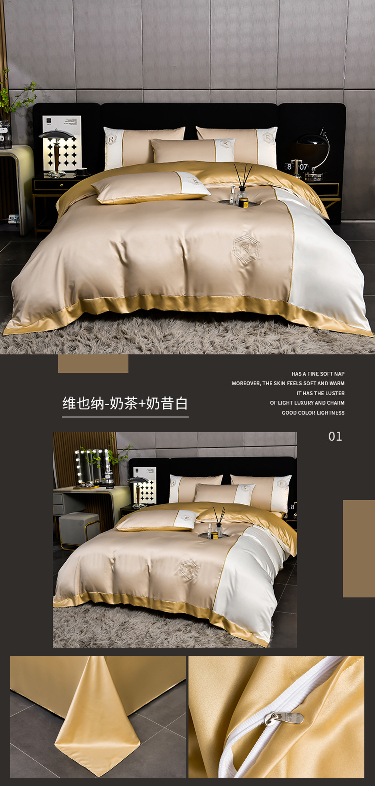 当前位置: 91家纺网 > 商品网购 > 床品套件 > 四件套 > 莱赛尔四件套 > 绒世界 2024新款水洗天丝刺绣维也纳系列四件套 维也纳-奶茶+奶昔白