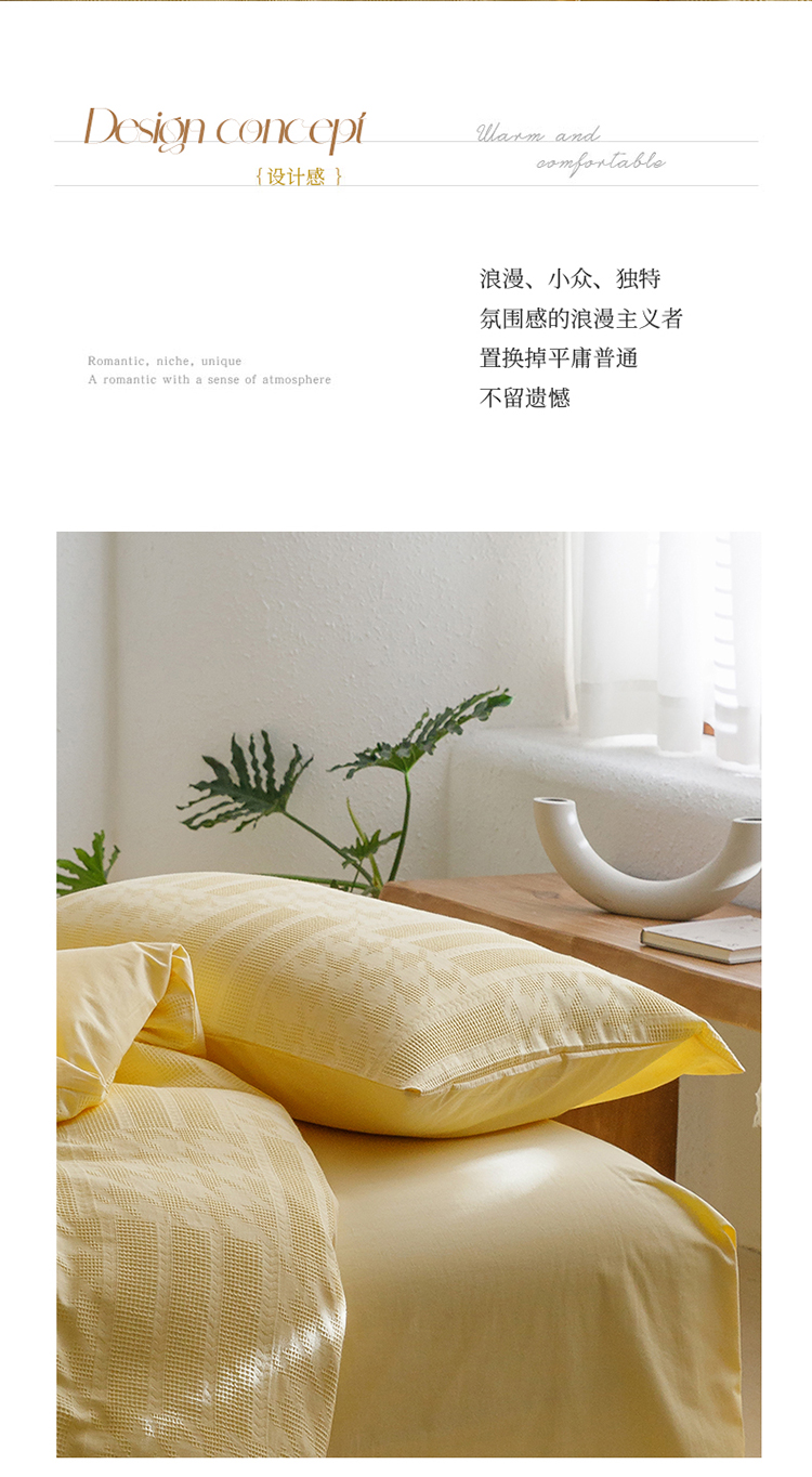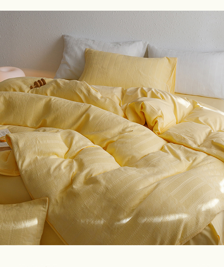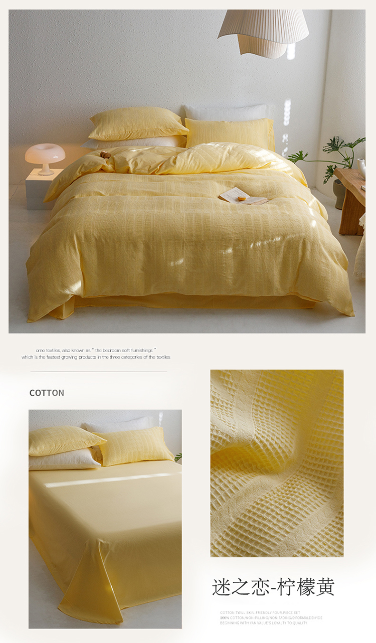 瑞米家居2023新款A类华夫格四件套-爱尚-迷之恋 迷之恋-柠檬黄