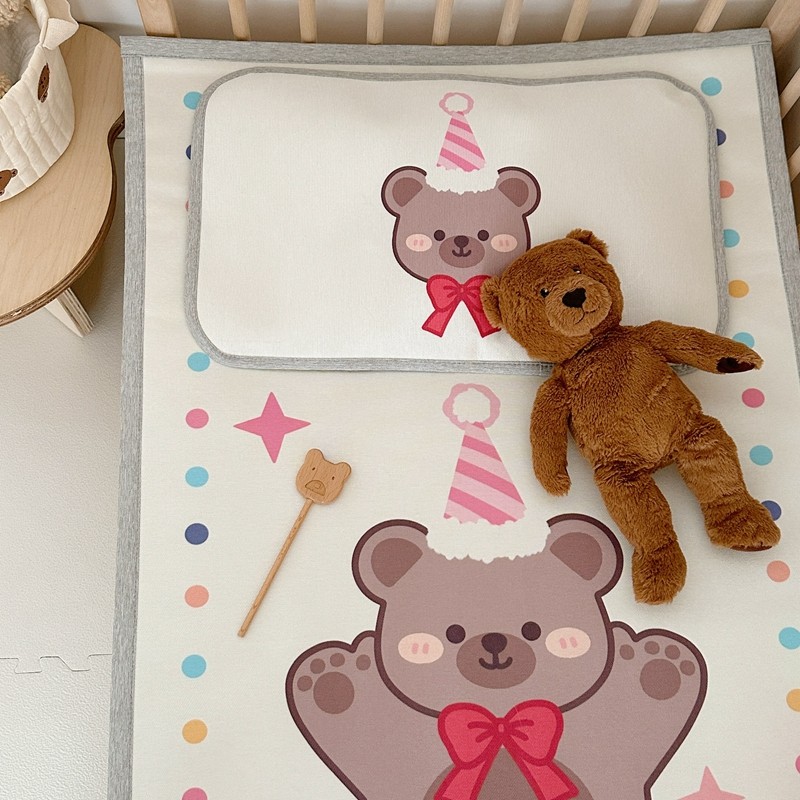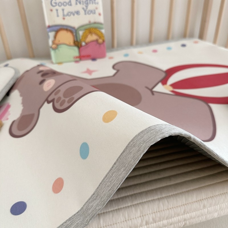 (总)橘滋 2025夏日新款高端A类原创设计婴儿童趣卡通数码印花冰丝席凉席-床席床笠,大眼熊仔,叠叠乐园,蝴蝶结兔兔,欢乐曲奇,木马小熊,太空冒险,熊猫胖达