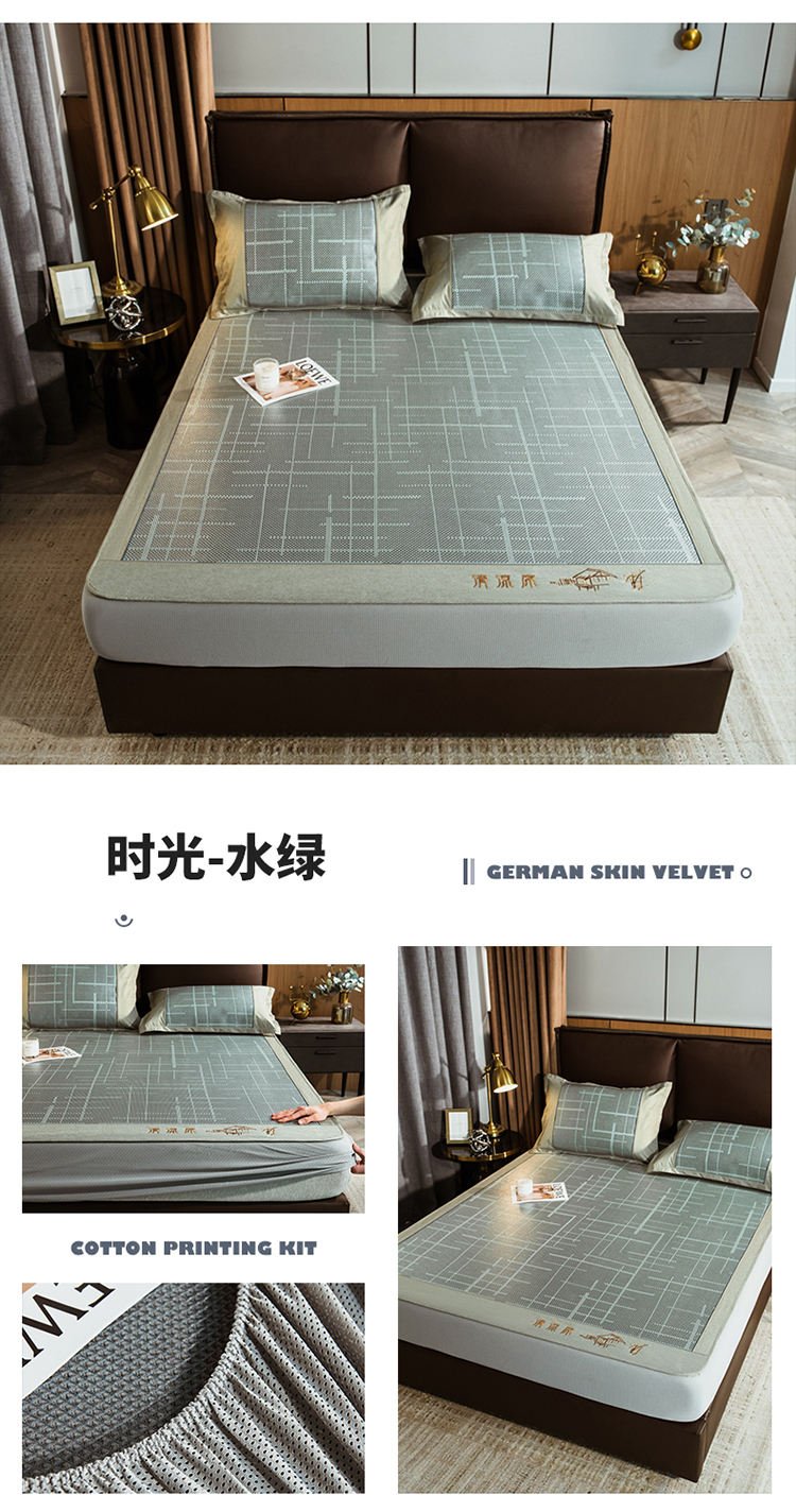 商品名称:全季家居 2023新款加厚加密宽边刺绣提花冰藤凉席-床笠款 时光-水绿