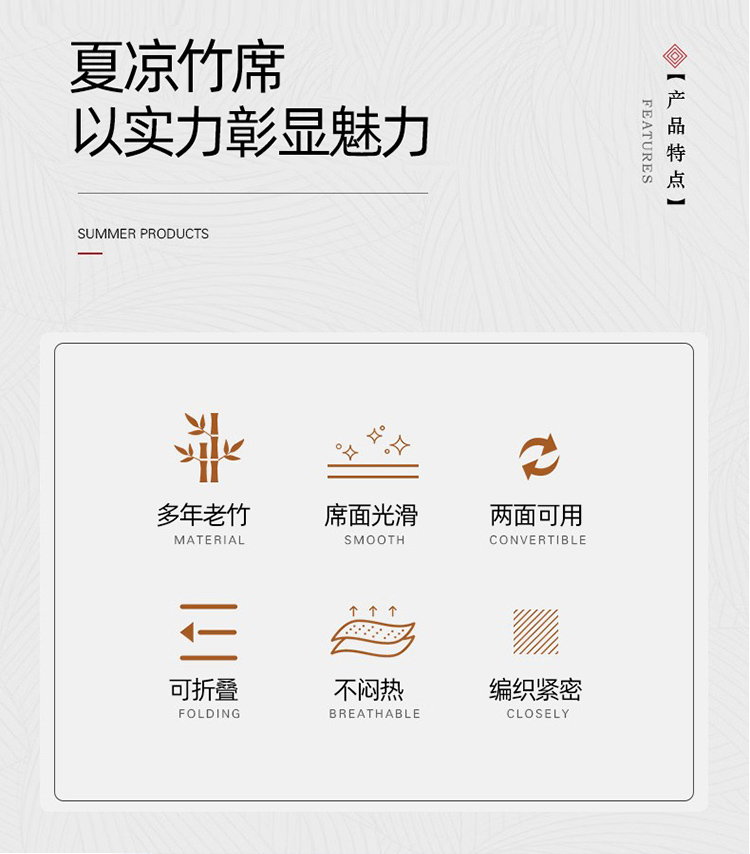 商品名称:2024新款双面席-磨光碳化竹席凉席空调席学生宿舍席子