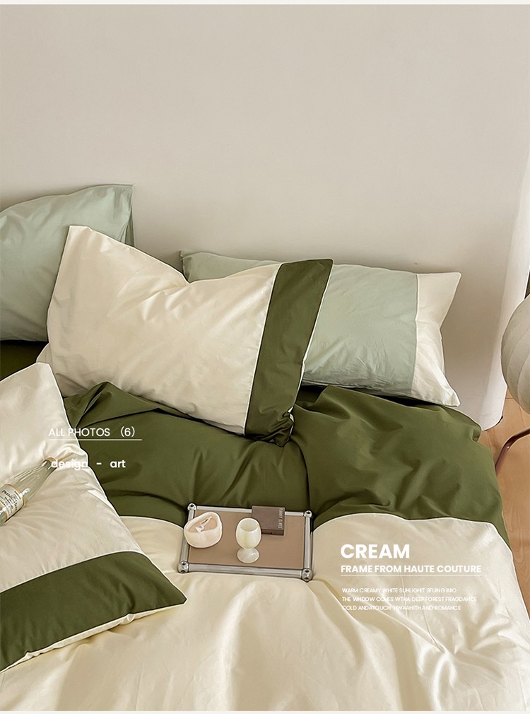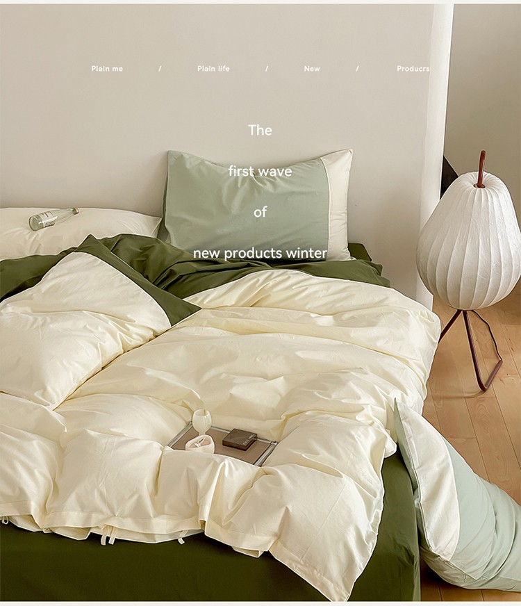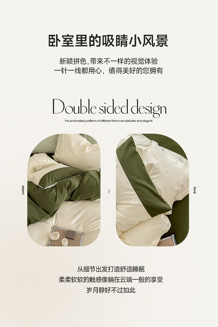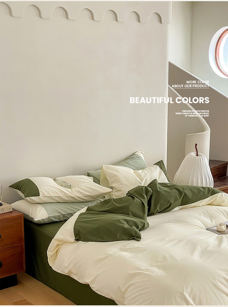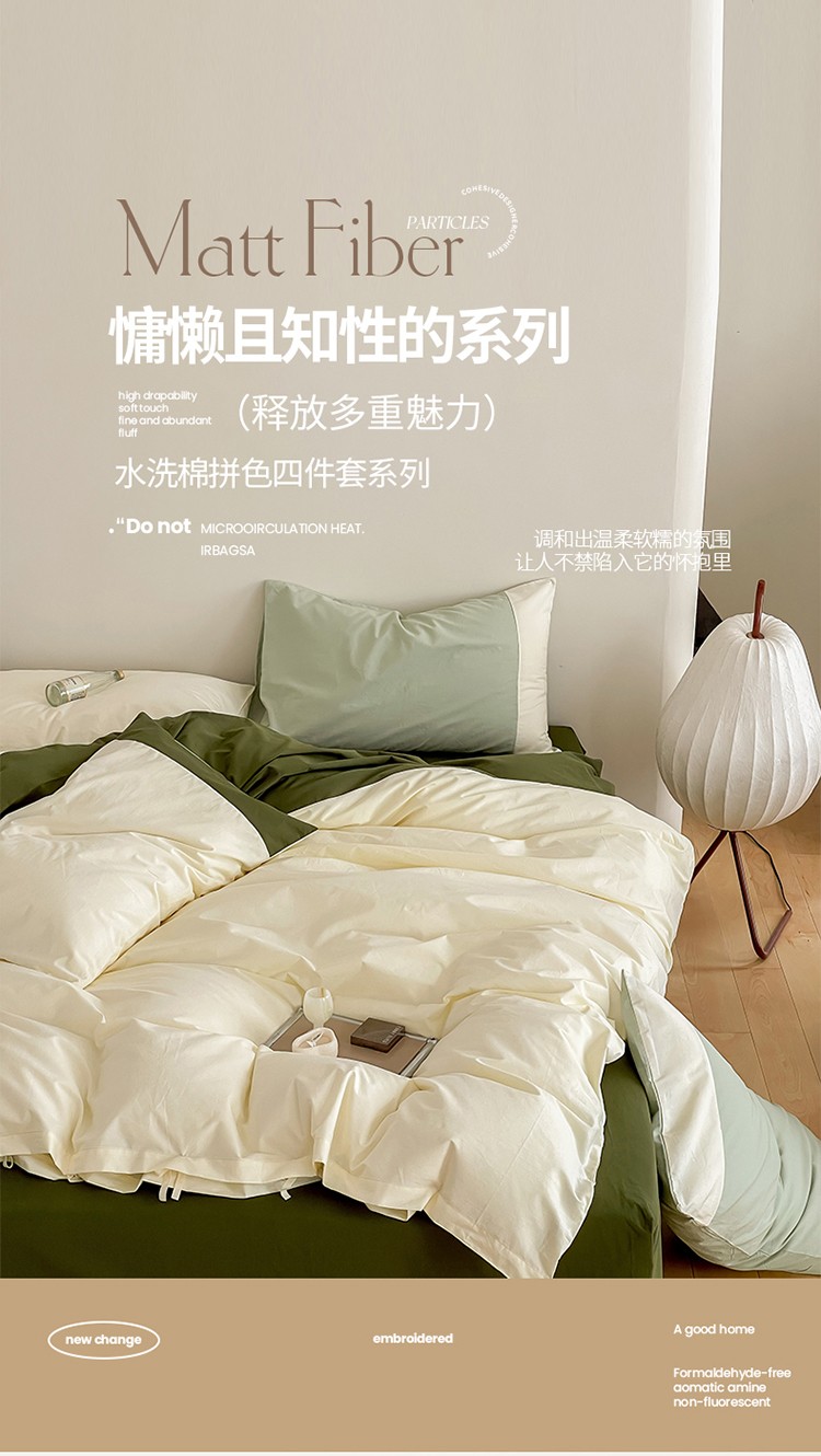 华超针织 2023新款水洗棉拼色四件套 牛油果奶昔