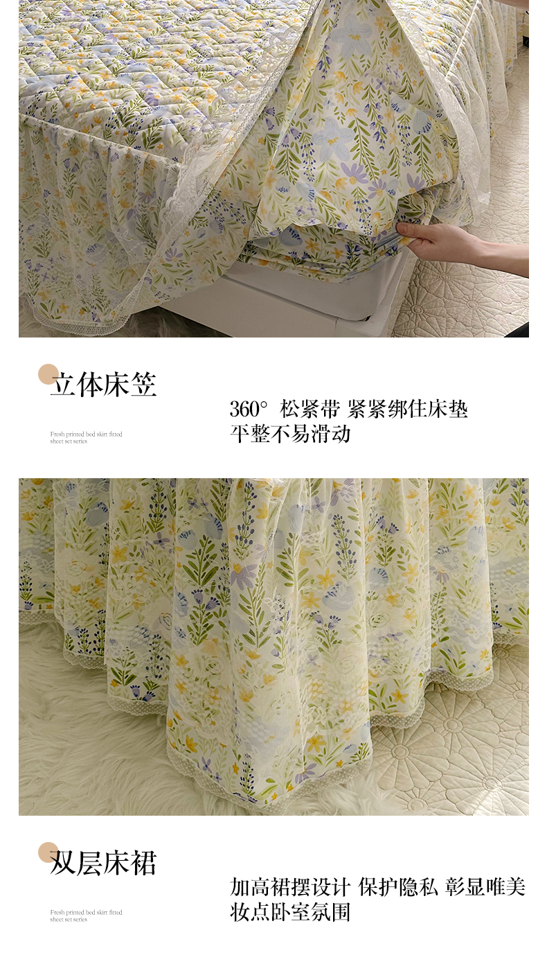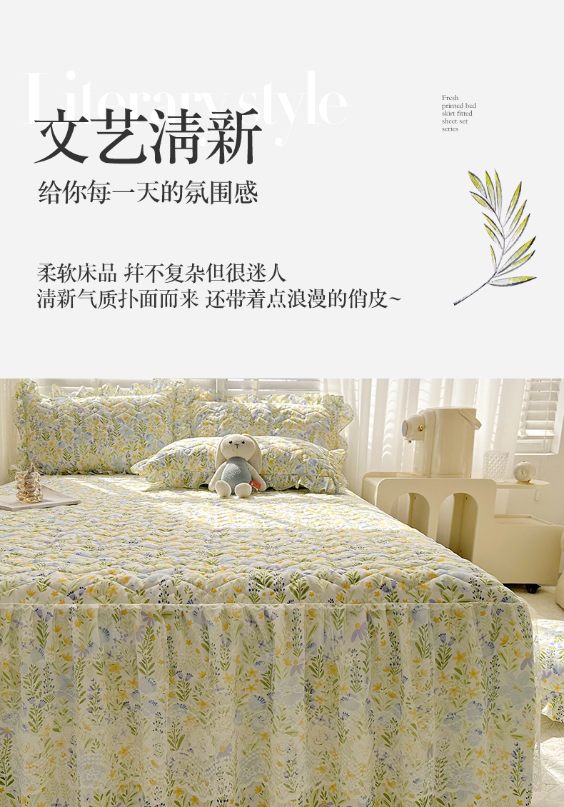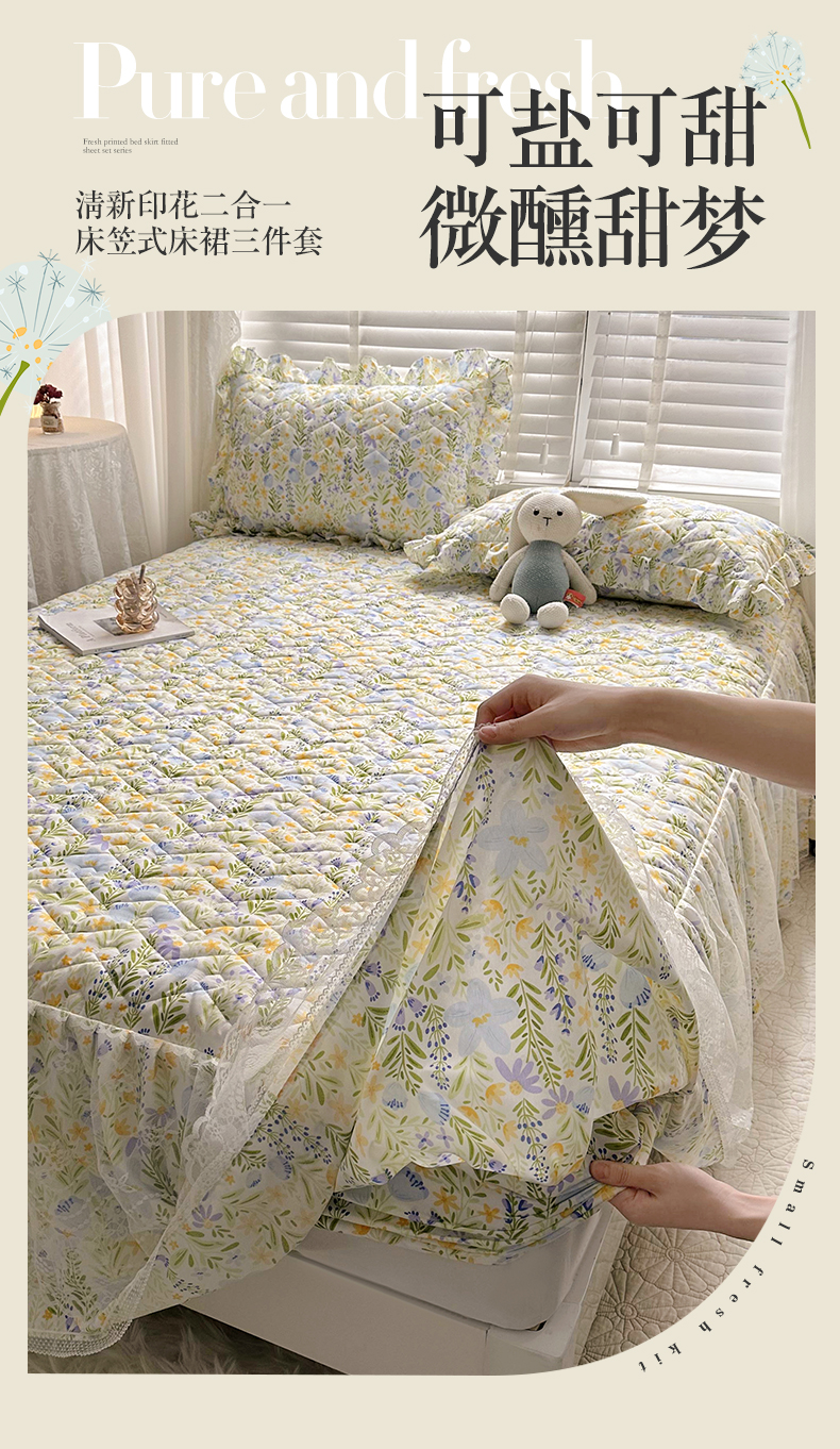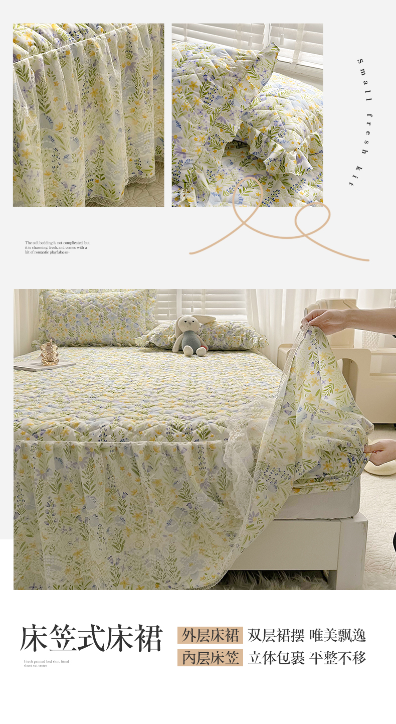 当前位置: 91家纺网 > 商品网购 > 床品套件 > 三件套 > 宜凡 2023新款云朵棉床笠式床裙三件套 艾罗花园