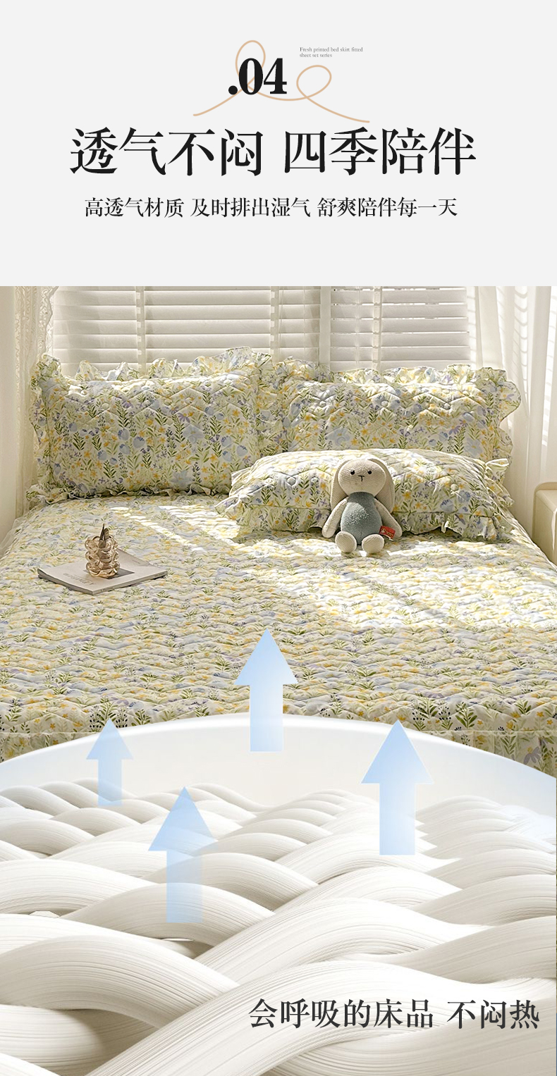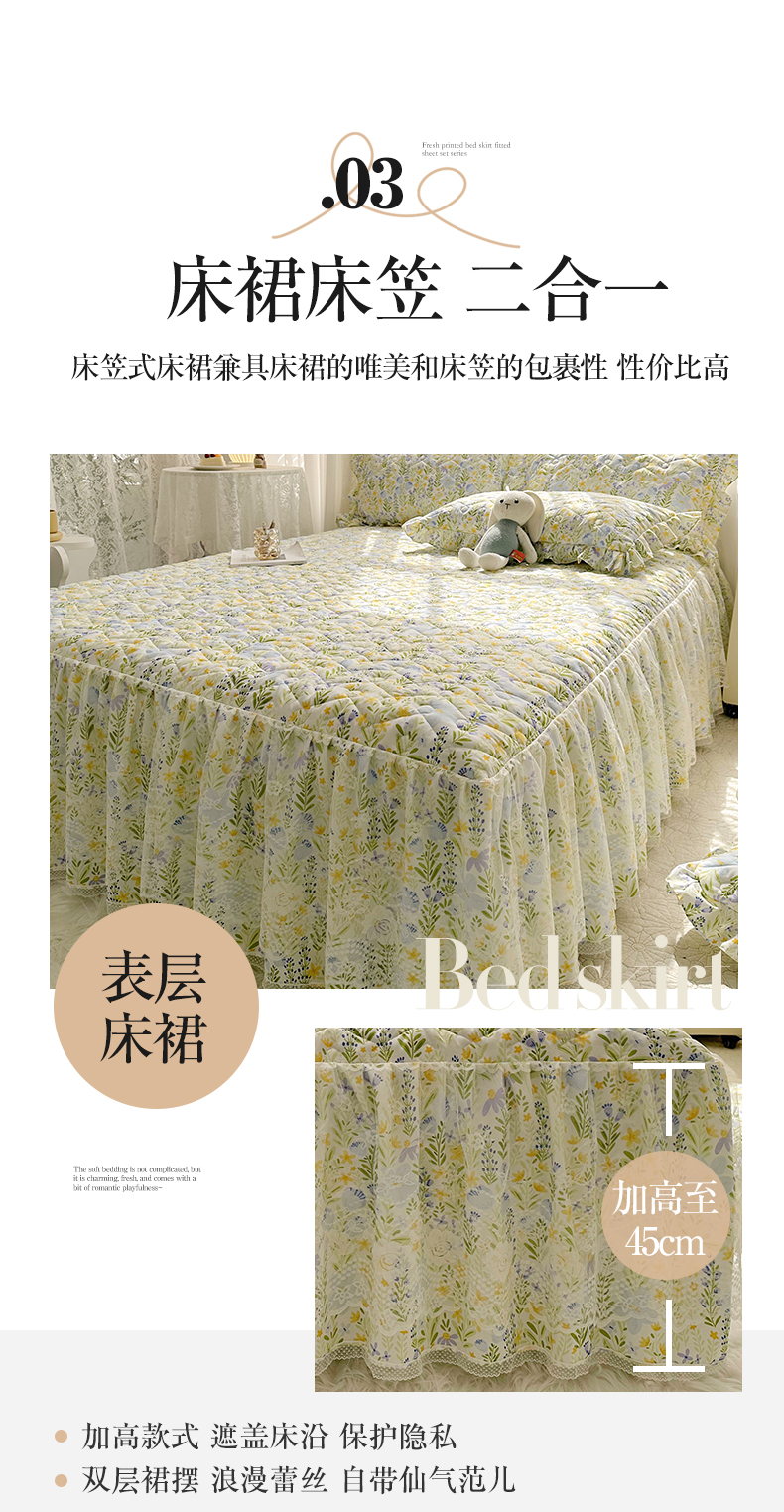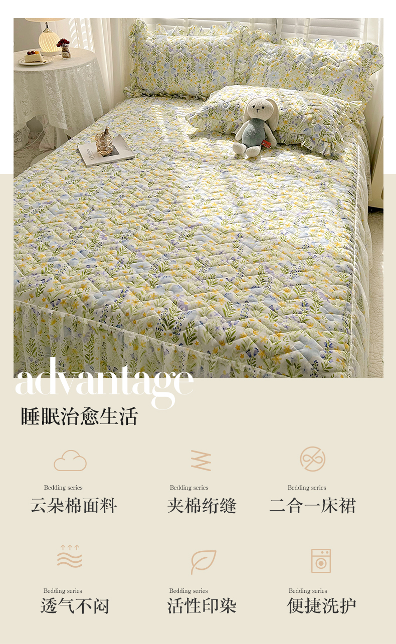 当前位置: 91家纺网 > 商品网购 > 床品套件 > 三件套 > 宜凡 2023新款云朵棉床笠式床裙三件套 艾罗花园