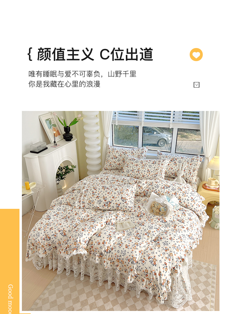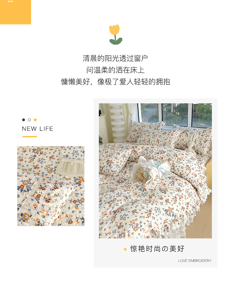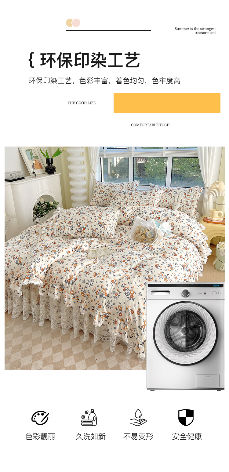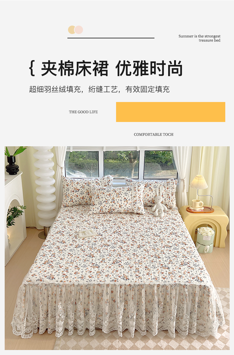 当前位置: 91家纺网 > 商品网购 > 床品套件 > 四件套 > 化纤普通四件套 > 罗艺轩 2024新款法式风蕾丝夹棉床裙款四件套 花想容-森之语
