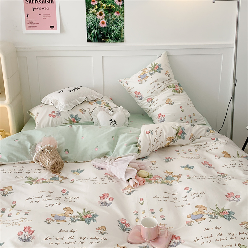 (总)昔可 2023新款全棉四件套-第五批,春日采花小兔,复古波西,落樱紫花,绿野小兔,排排郁金香,芍药女孩,叶子樱桃