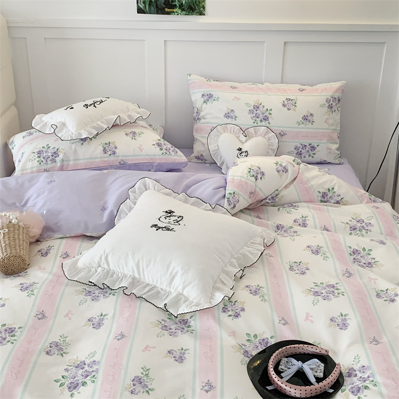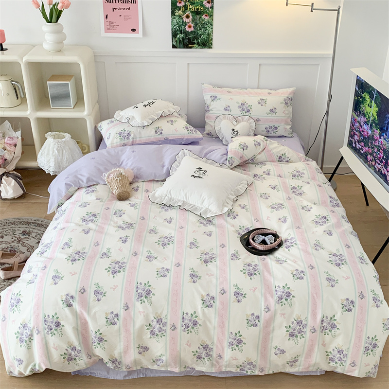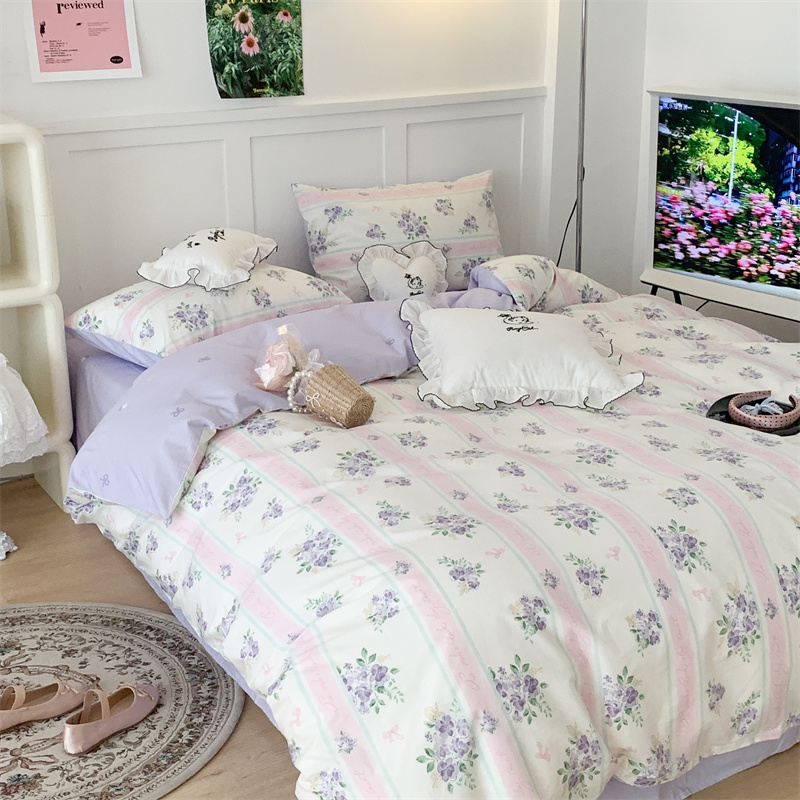 (总)昔可家纺 2023新款全棉小花系列四件套,柏林少女,小小的樱桃,紫色葡萄