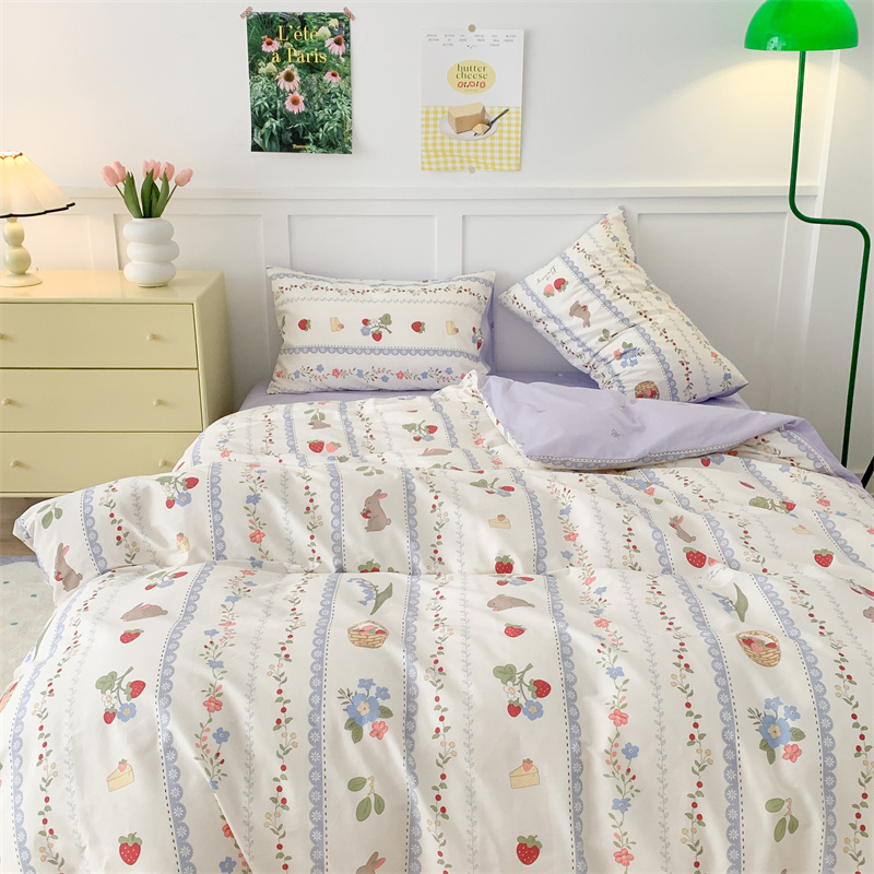 (总)昔可 2023新款学生季全棉四件套-小花系列,柏林少女,花野迷踪,少女粉草莓,微熏海棠,夏茉莉,小兰花,小小的樱桃,紫色果果,紫色葡萄