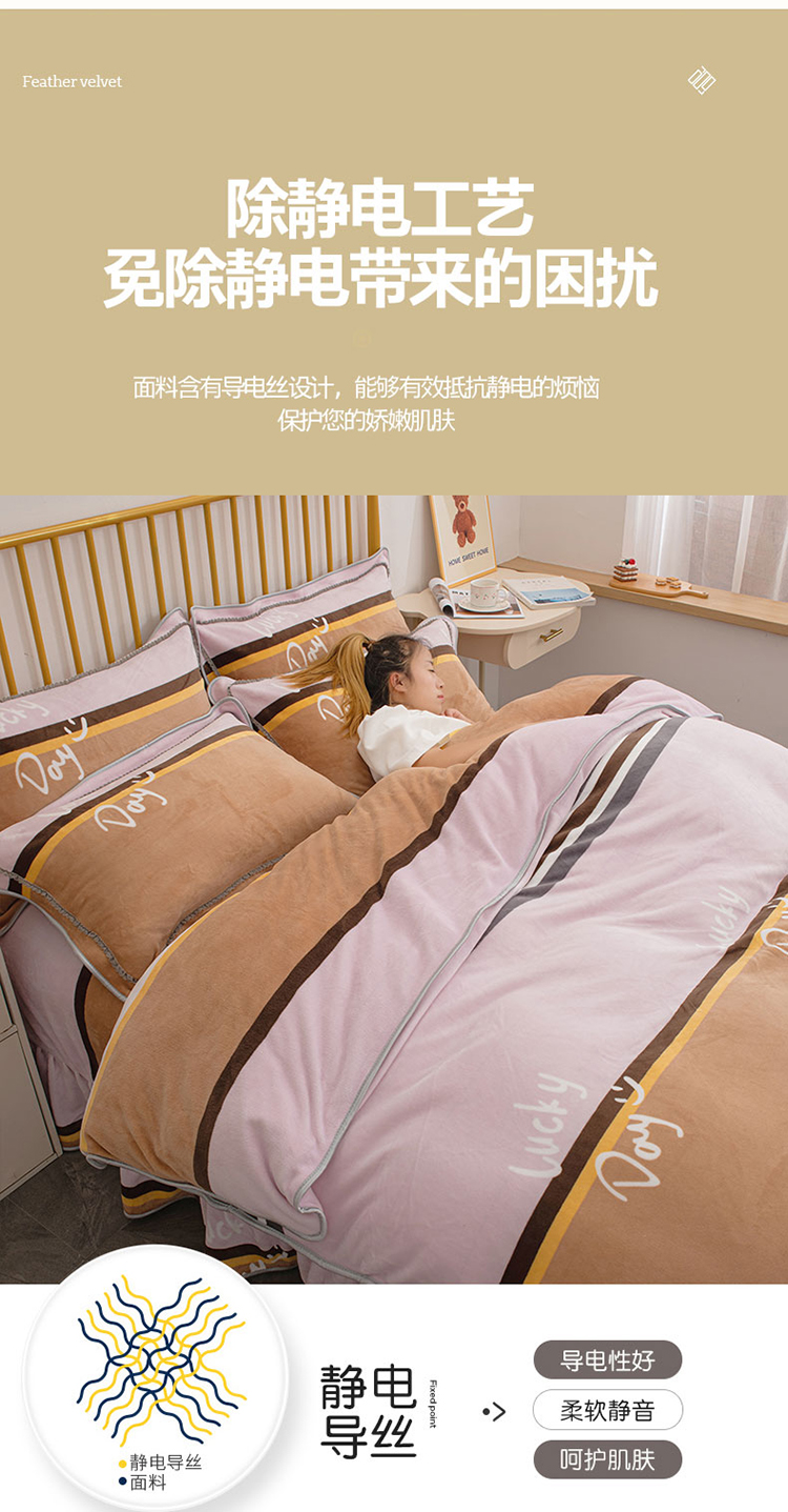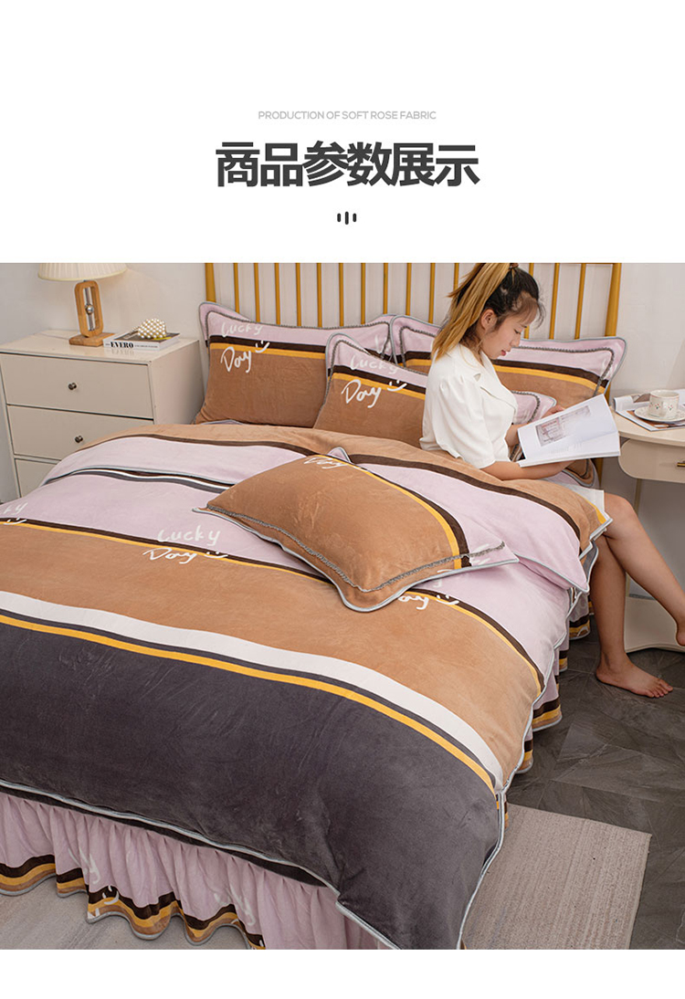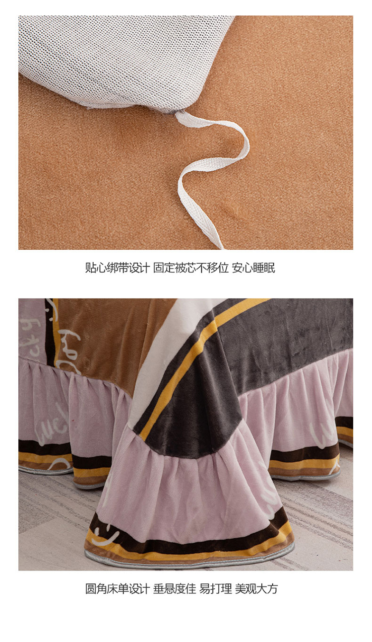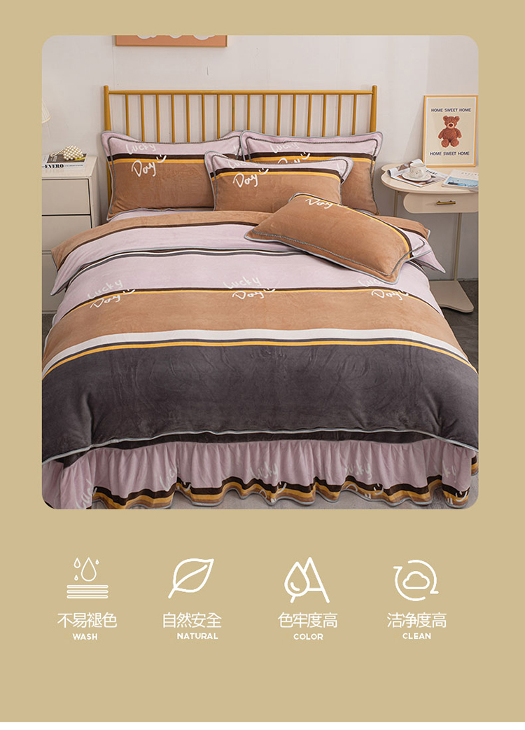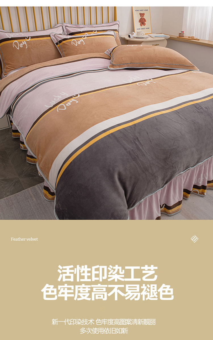 商品名称:登登家纺 加厚印花牛奶金貂法莱宝宝绒四件套 幸运时空