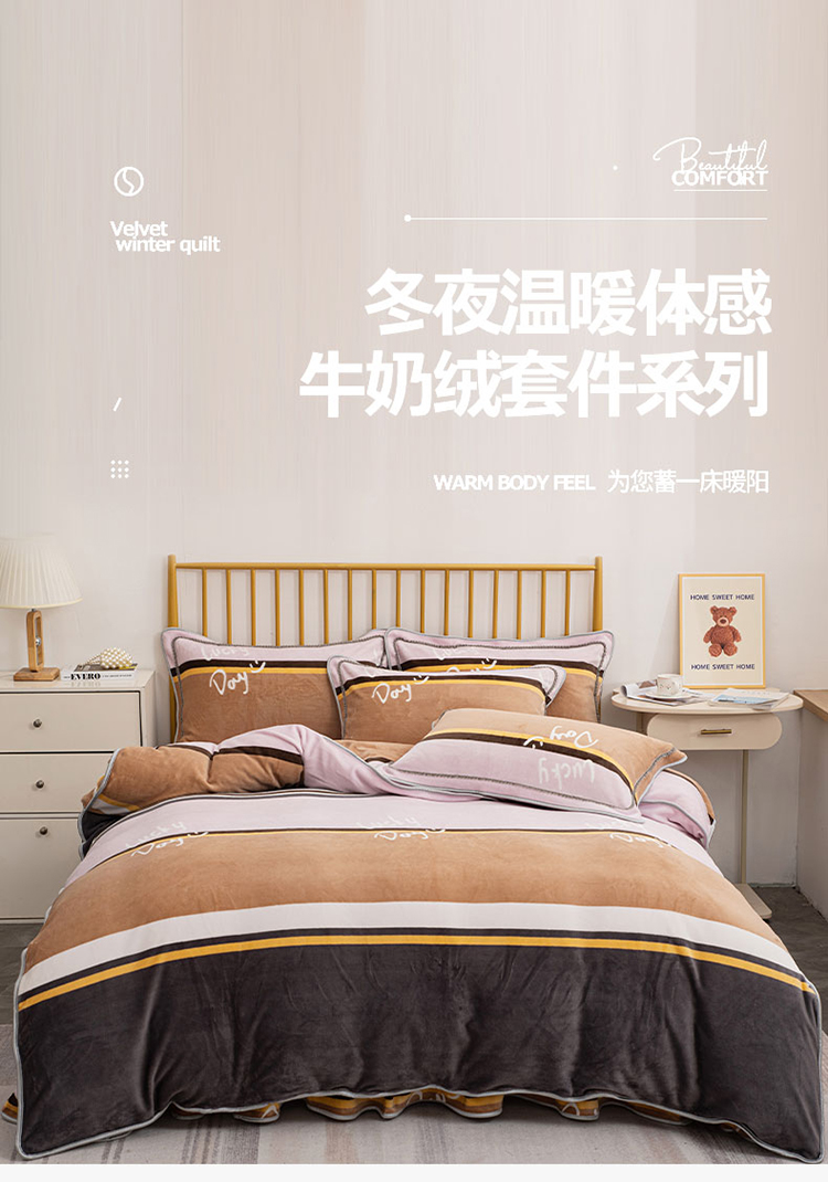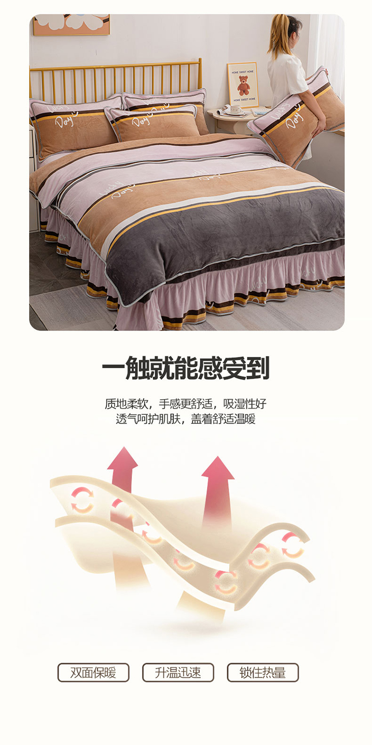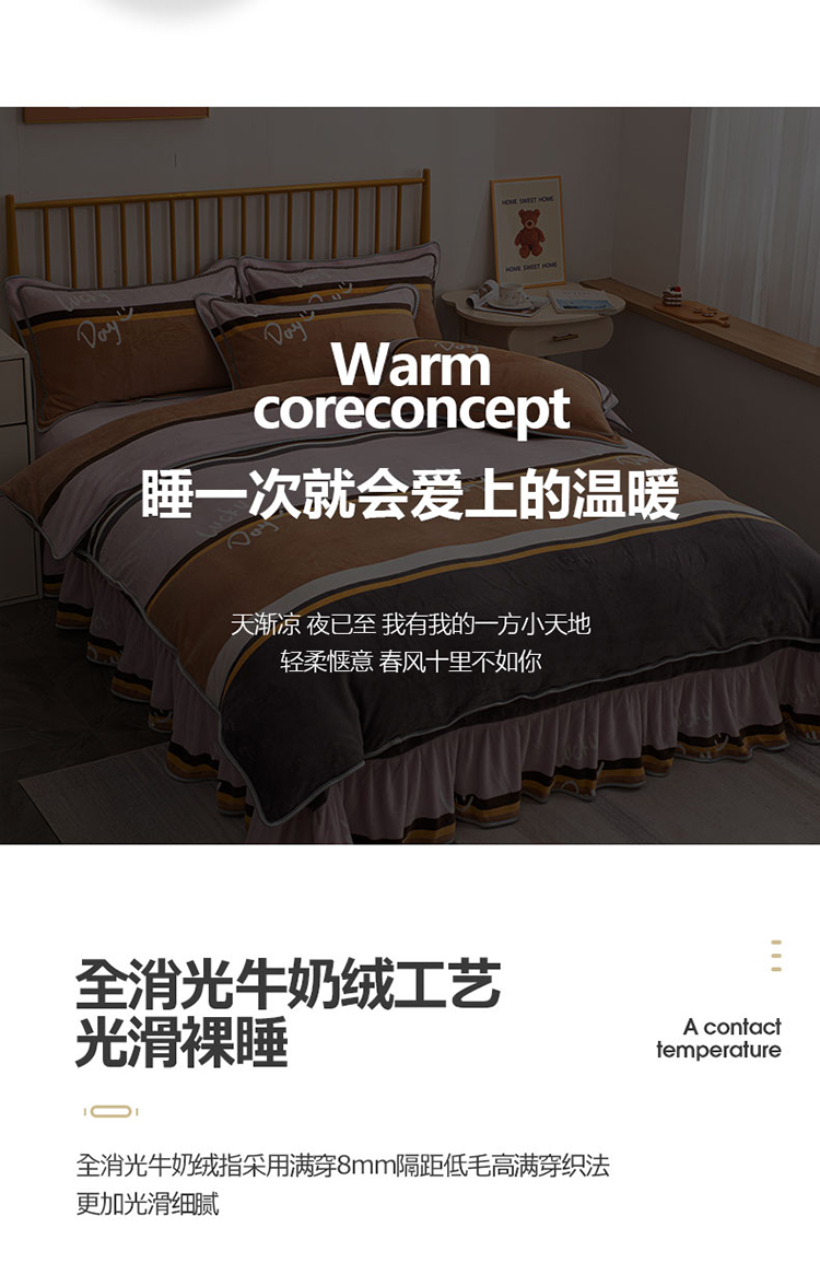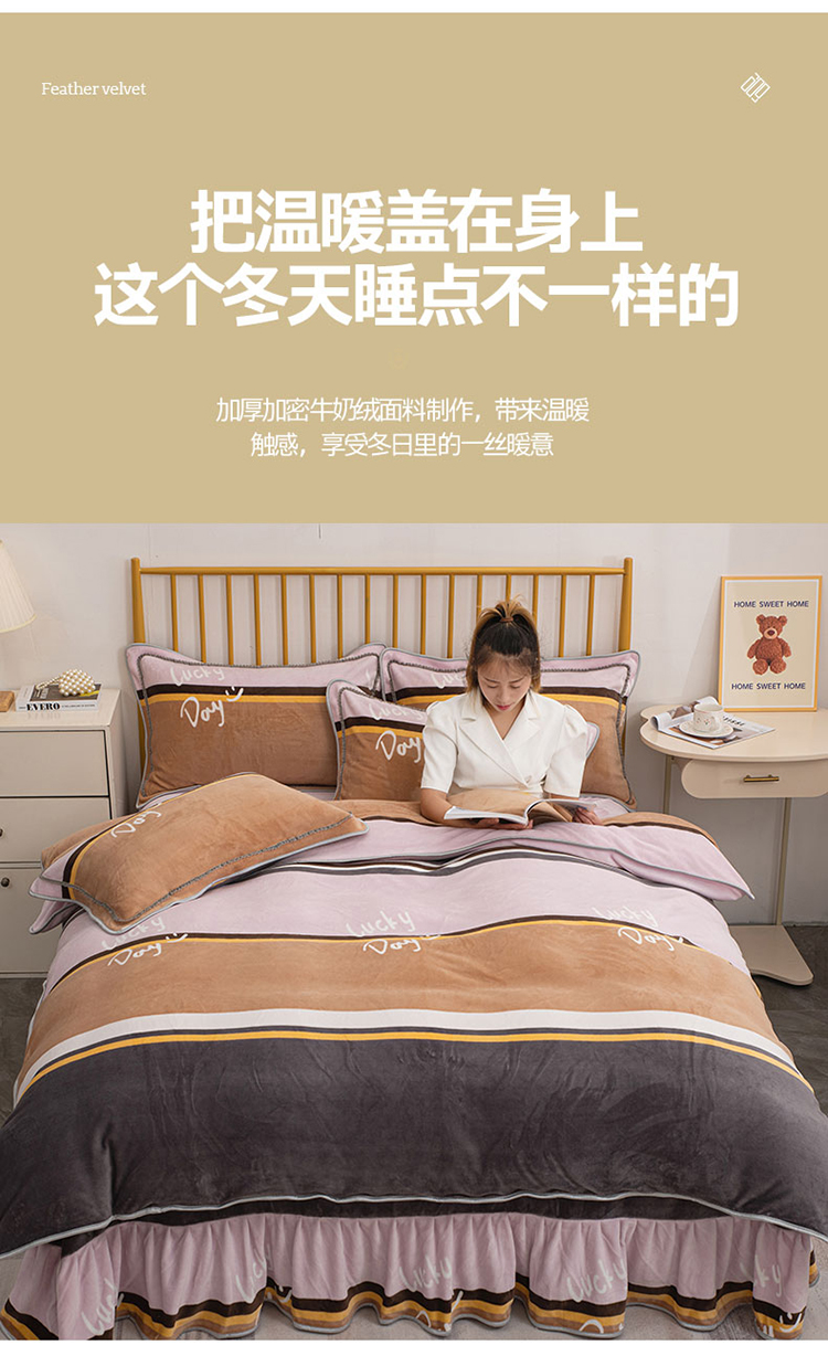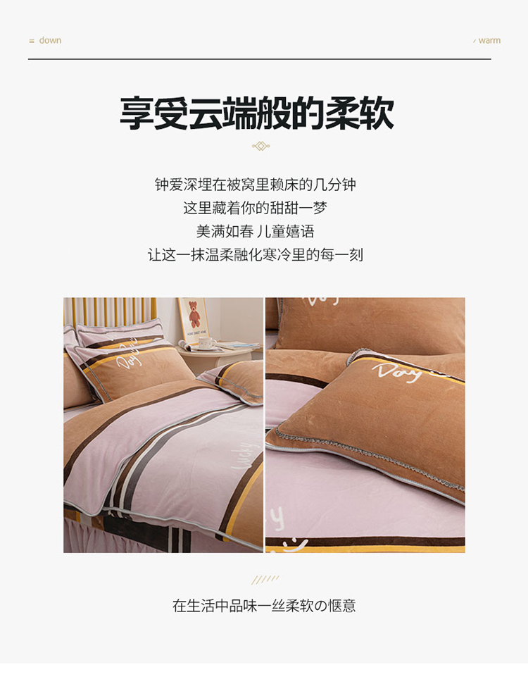 商品名称:登登家纺 加厚印花牛奶金貂法莱宝宝绒四件套 幸运时空