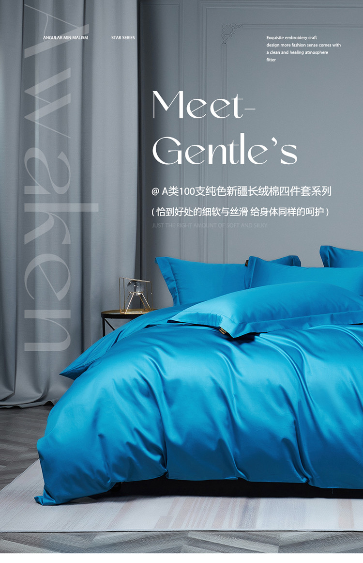 当前位置: 91家纺网 > 商品网购 > 床品套件 > 四件套 > 长绒棉四件套 > 莱阁亿 2023新款高支高密纯色新疆长绒棉四件套 元气蓝