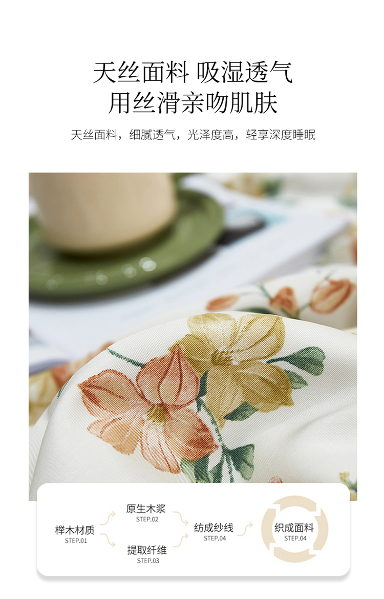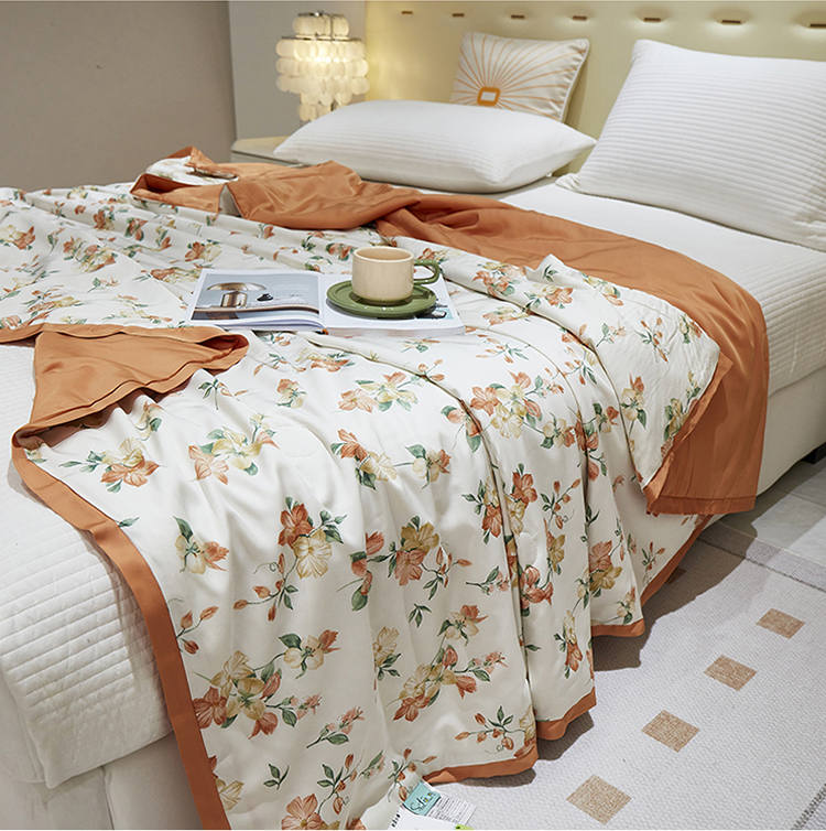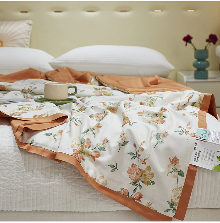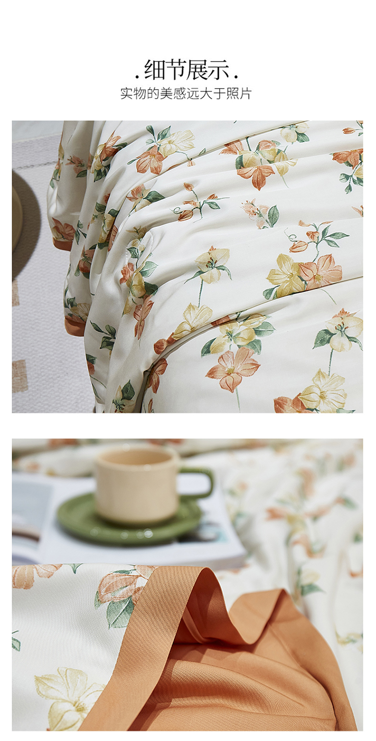 (总)2025新款50莱赛尔双面天丝床盖三件套,山茶花粉,山茶花蓝,山茶花白,山茶花黄
