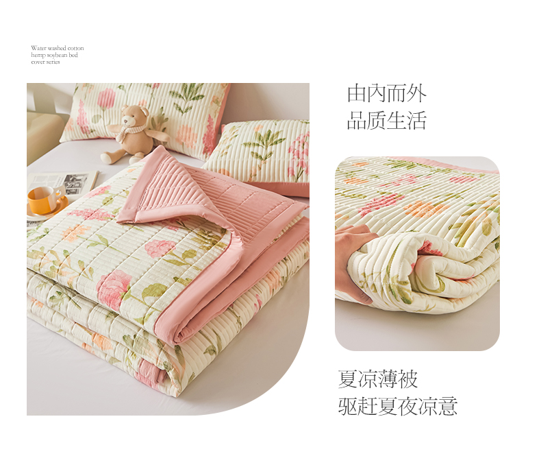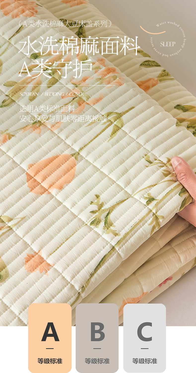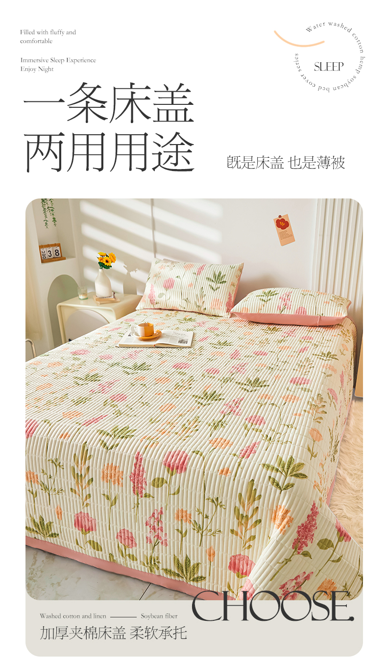 商品名称:圣比熊水洗棉麻床盖大豆纤维夹棉加厚宿舍铺盖两用床单床裙保护垫 繁花似锦