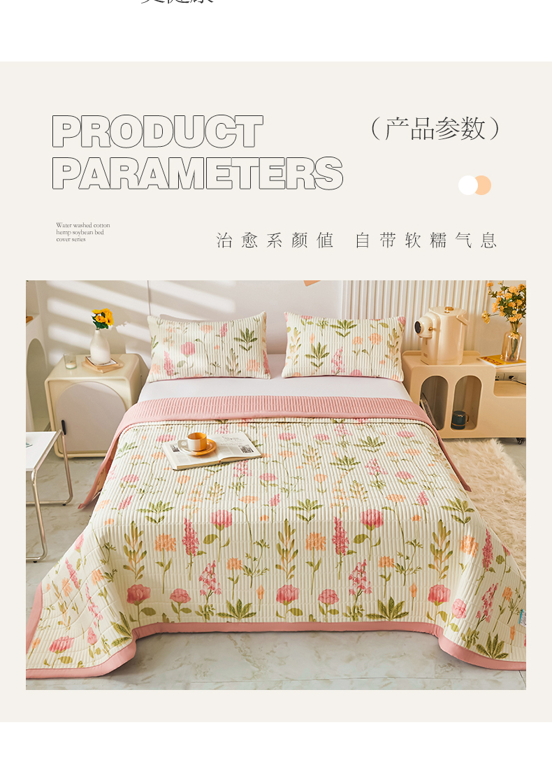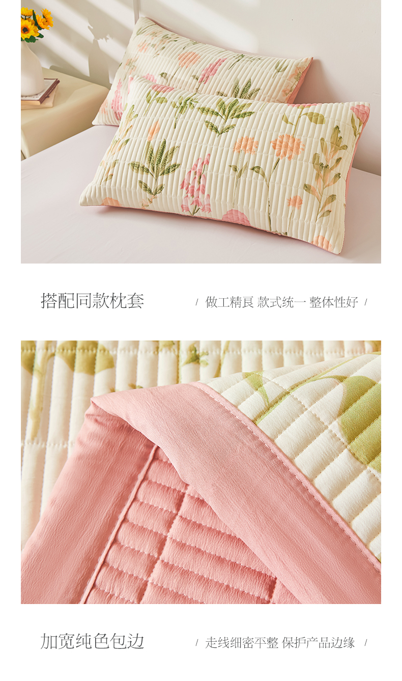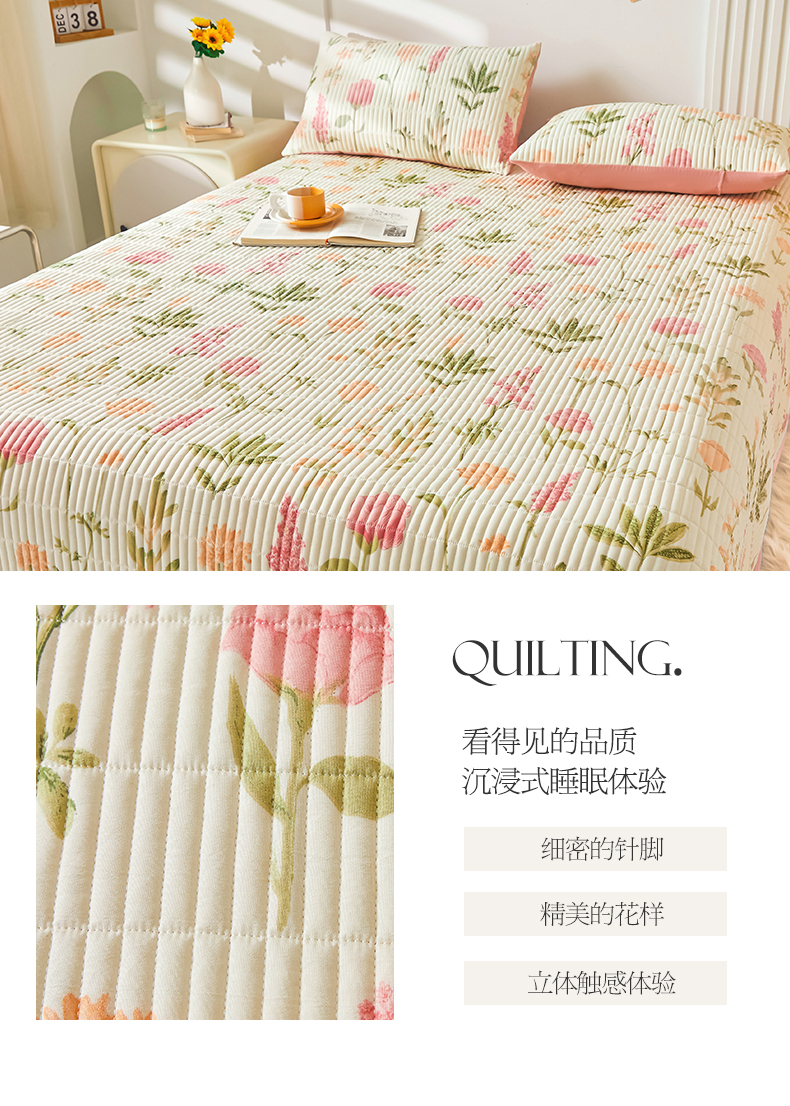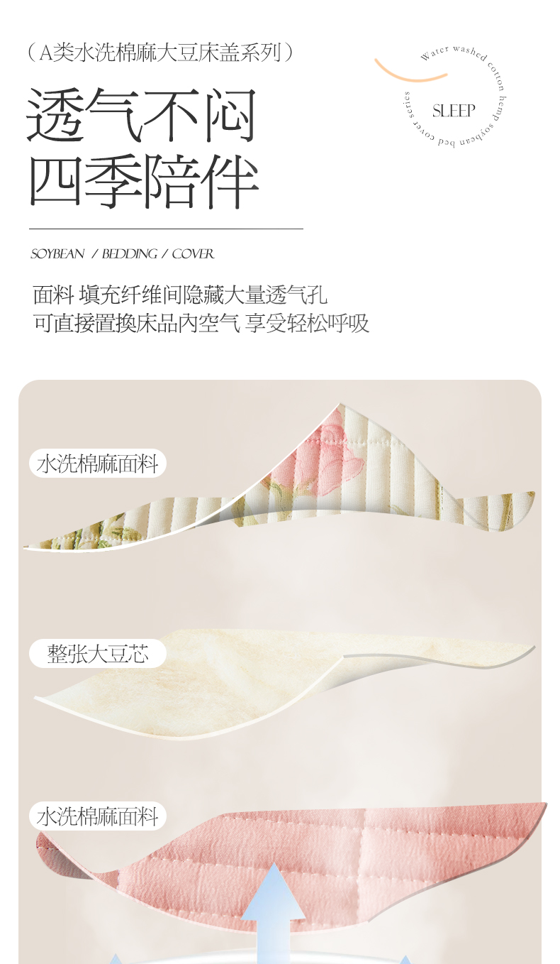 商品名称:圣比熊水洗棉麻床盖大豆纤维夹棉加厚宿舍铺盖两用床单床裙保护垫 繁花似锦