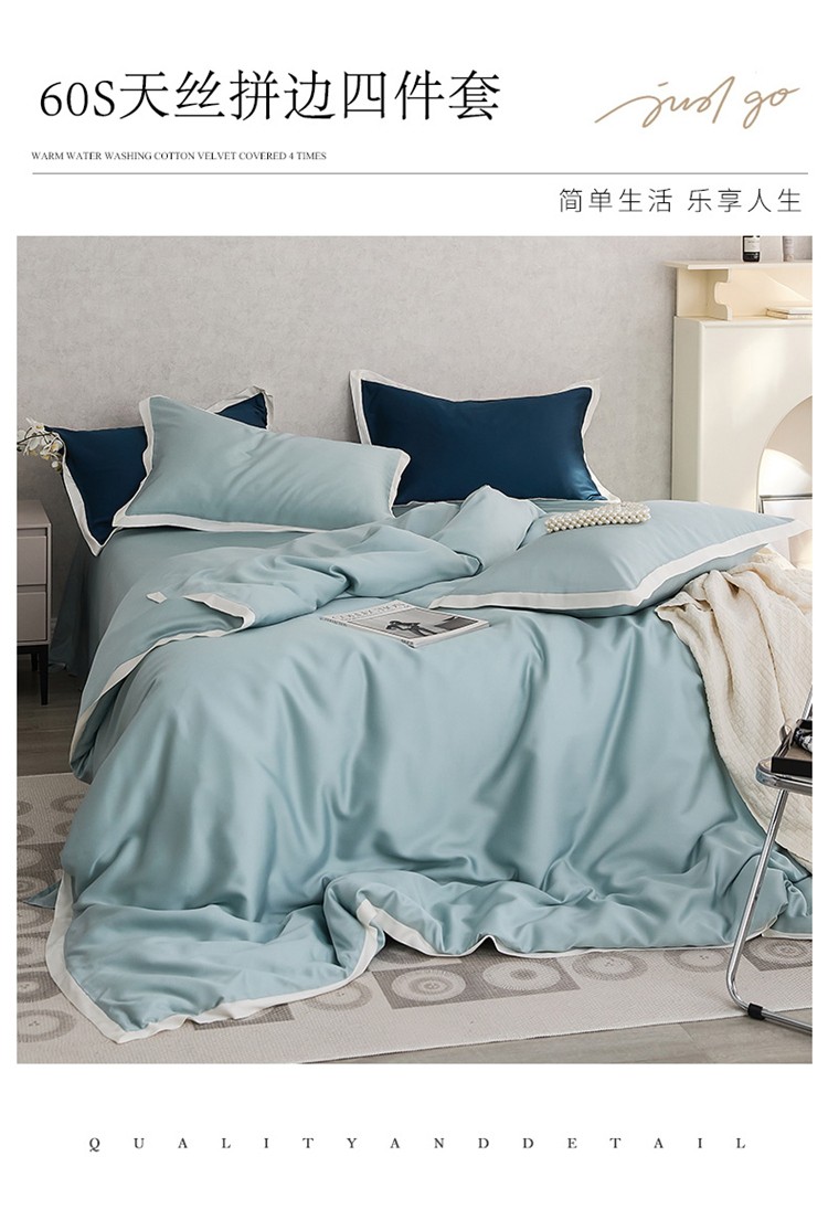 当前位置: 91家纺网 > 商品网购 > 床品套件 > 四件套 > 莱赛尔四件套 > 2023新款春夏60天丝四件套-半夏系列 半夏-清蓝